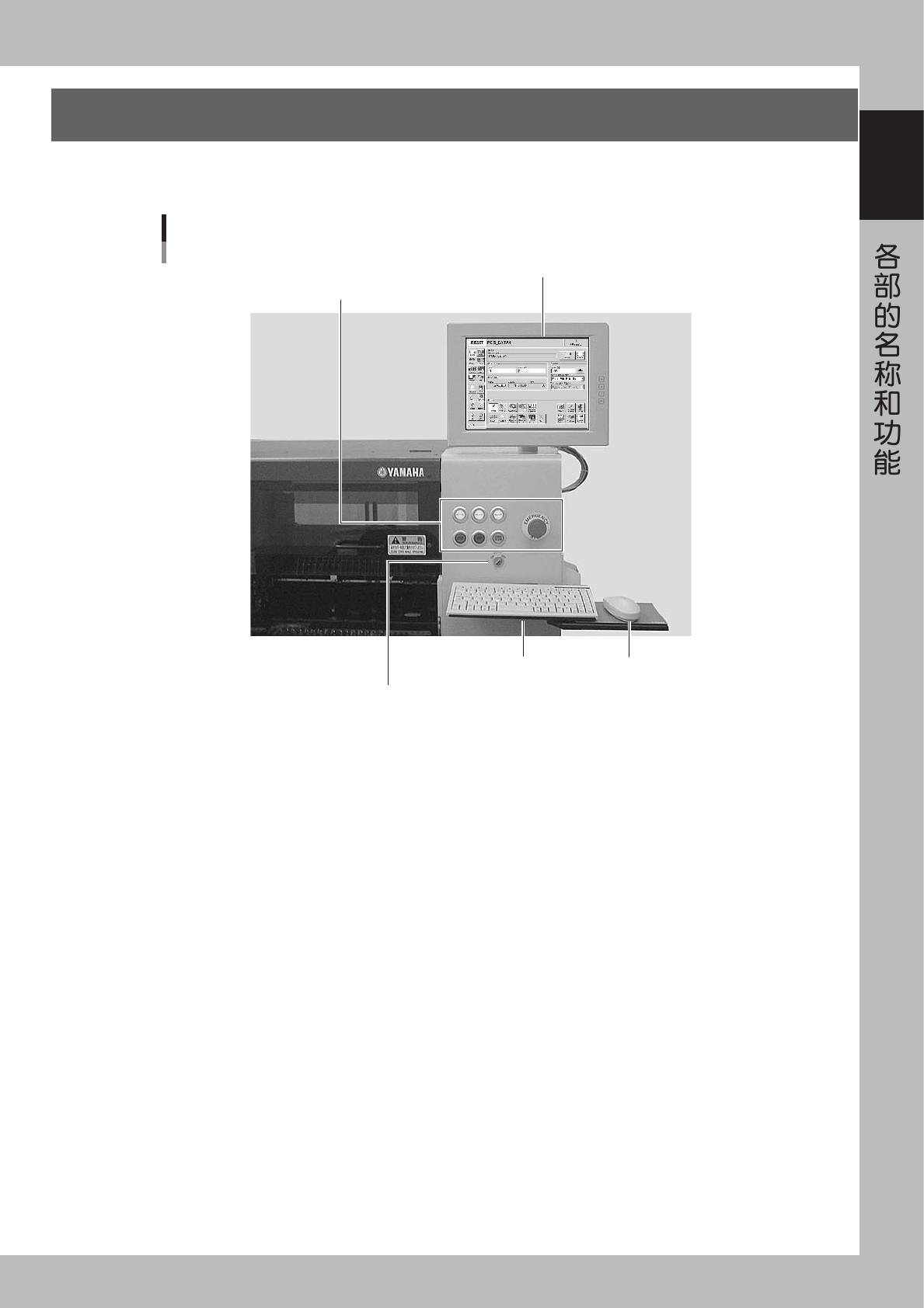 主机的正面和背面 ( 背面为选件 ) 有操作机器、输入数据时使用的操作面板按钮、键盘、鼠标等装备。以下分别对
