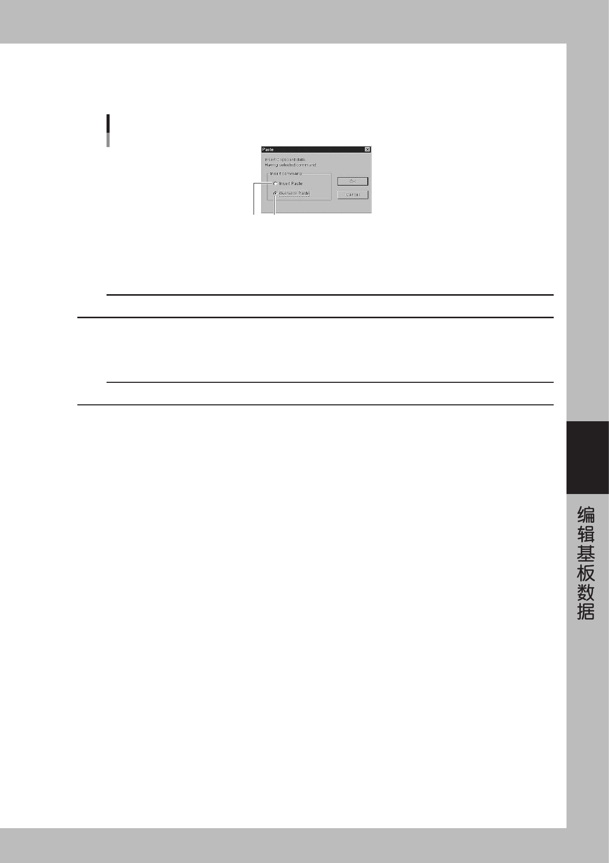 选择「Paste」后,显示确认粘贴方法的画面,从粘贴方法栏中选择「Insert Paste」或「Overwrite