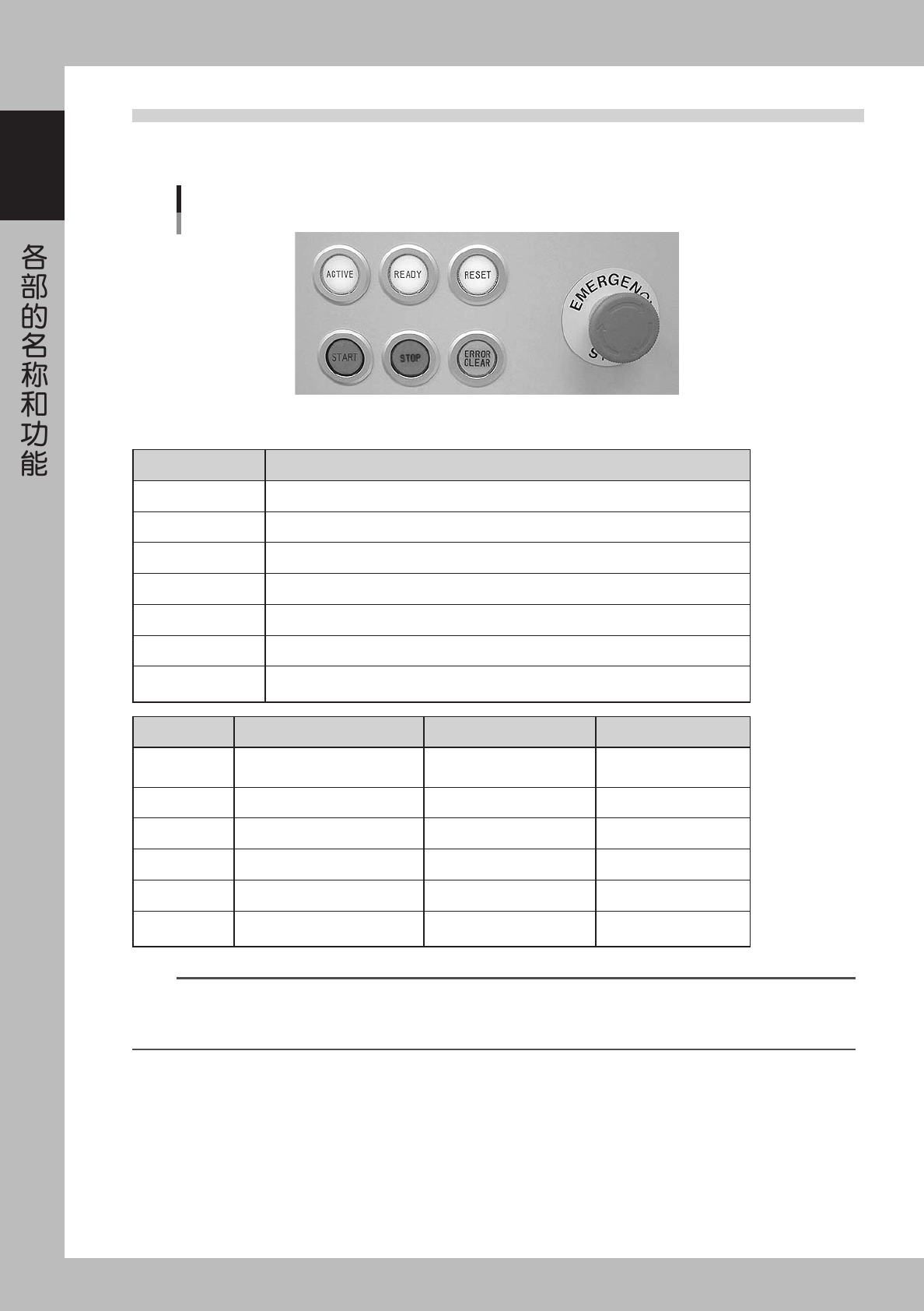 [ACTIVE] 按钮配备在主机的前后两处,不能同时打开两处按钮。[READY][START][ERROR CLEAR] 和 [RESET] 按钮,只有在同