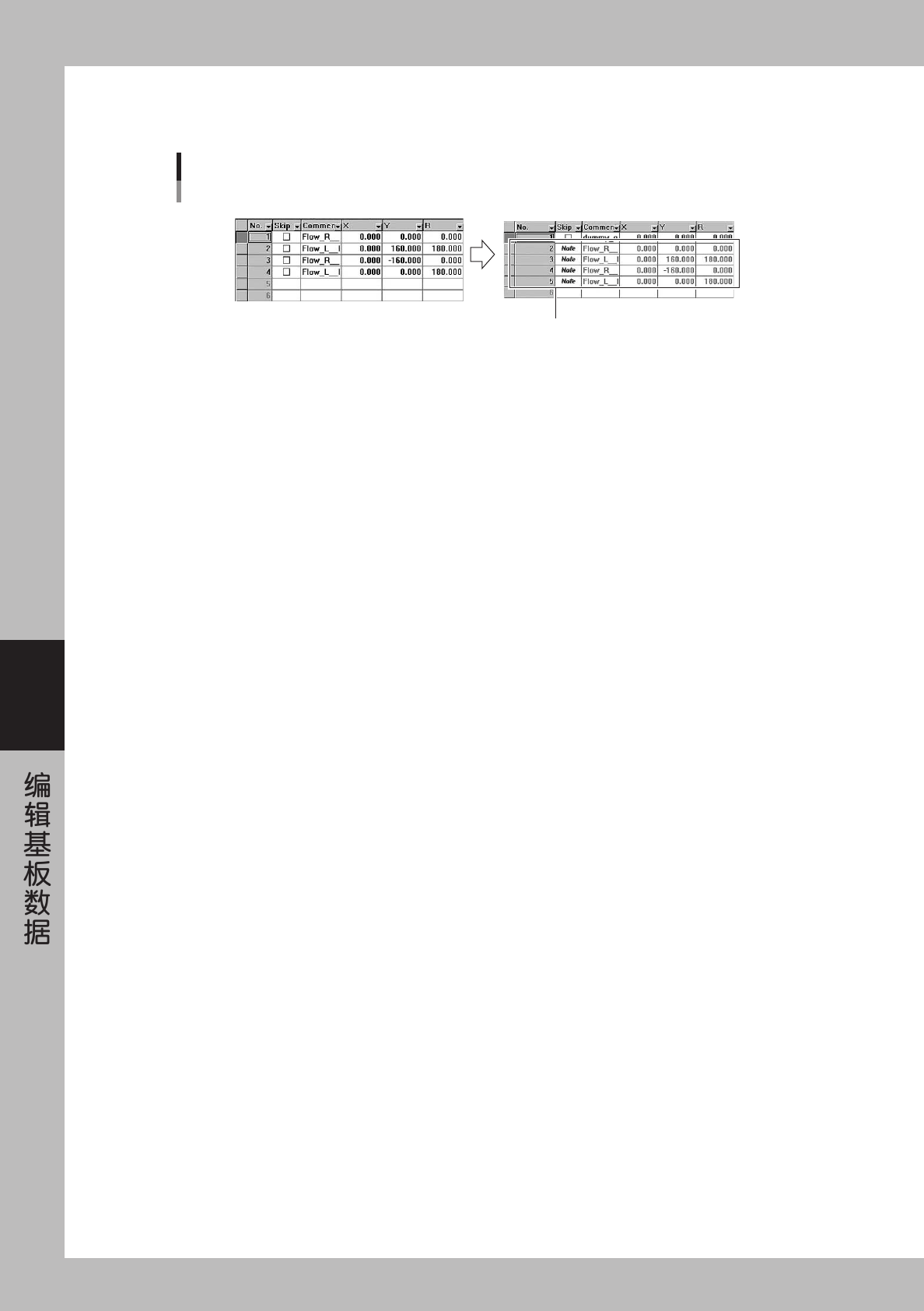 5-18 5 4 确 认 扩 展 状 态 。 如 果 选 择 了 「 D i s t r i b u t e w i t h n o t e D a t a 」 , 拼 块 位 移 扩 展 前 的 数 据 被 作 为 「 N o t e 」 ( 参 考 ) 保 留 , 请 确 认 。 拼块位移的扩展 (有参考数据)的示例 作为「Note」被保留 26 5 22 - E0 -0 0 5 保 存 基 板 数 据 。