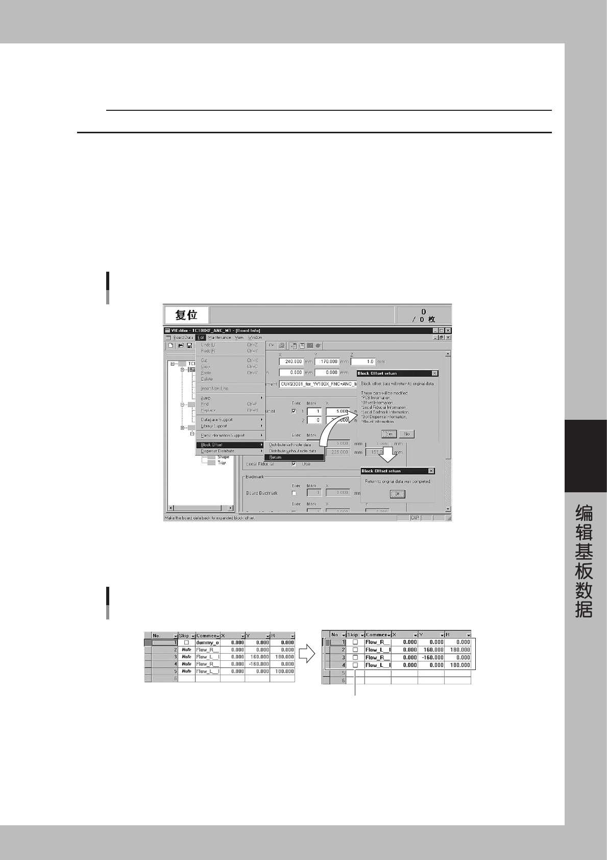 扩展各拼块的数据,将其变换为整枚基板数据,或将已扩展的数据还原为原拼块数据的功能。将已被进行位移设