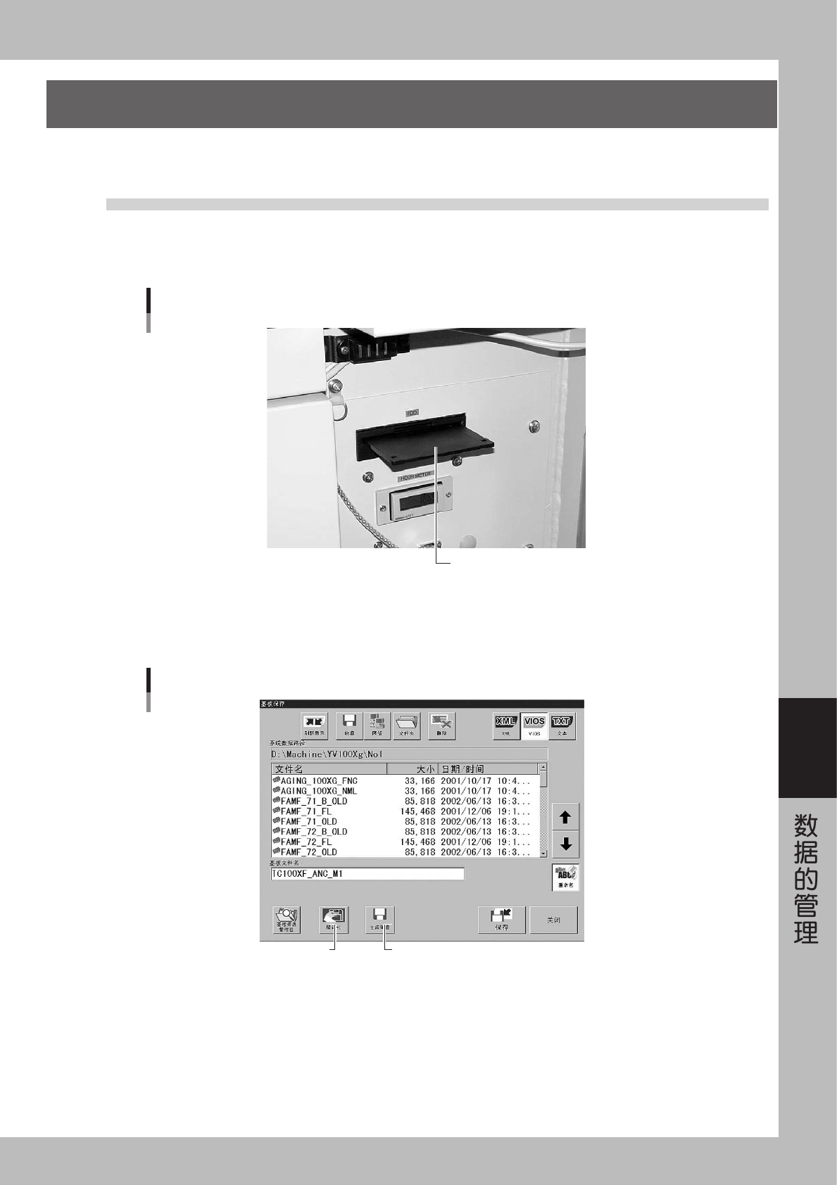 6-1 6 1 . 数 据 的 备 份 对 基 板 数 据 进 行 备 份 , 必 须 用 Y A M A H A 贴 片 机 专 用 的 「 基 板 数 据 磁 盘 」 。 本 节 就 生 成 基 板 数 据 盘 的 方 法 和 数 据 备 份 的 方 法 作 具 体 说 明 。 1 . 1 . 生 成 基 本 数 据 磁 盘 1 将 磁 盘 插 入 磁 盘 驱 动 器 。 将 磁 盘 ( 2 H D ) 插入 主 机 的 F D 驱…