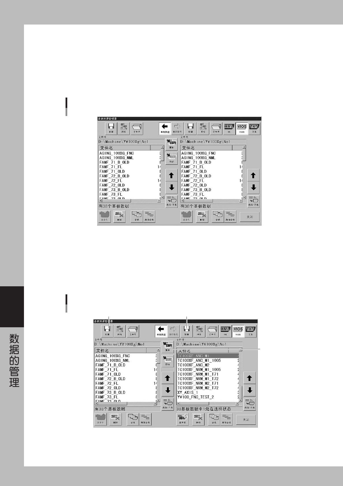 请用光标选择要备份的基板数据。同时按 [Ctrl] 键和 [Shift] 键,可以选择多个数据。需选择全部基板数