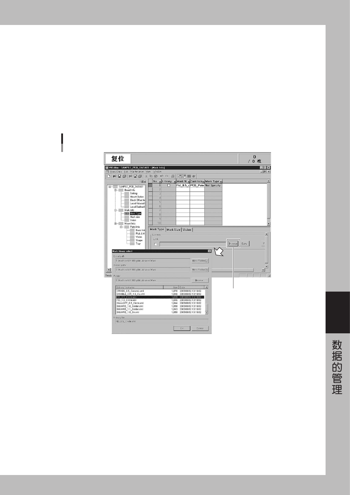 如对标记一个一个设置,请按 [Find] 按钮,只要文件夹内存在与元件名称同名的信息库,信息库即显示在画面上。选择被显示的