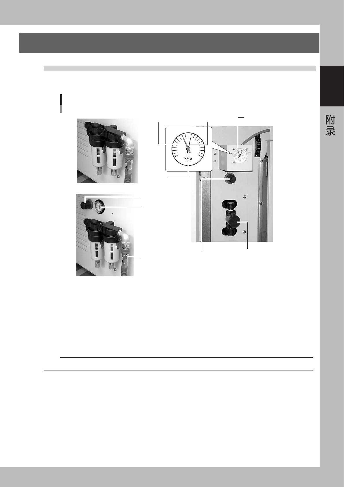 主机正面左下方面板内及左侧面的主机气动部中安装着供给气压的调整部。气压调整部必须设置如下图所示的最