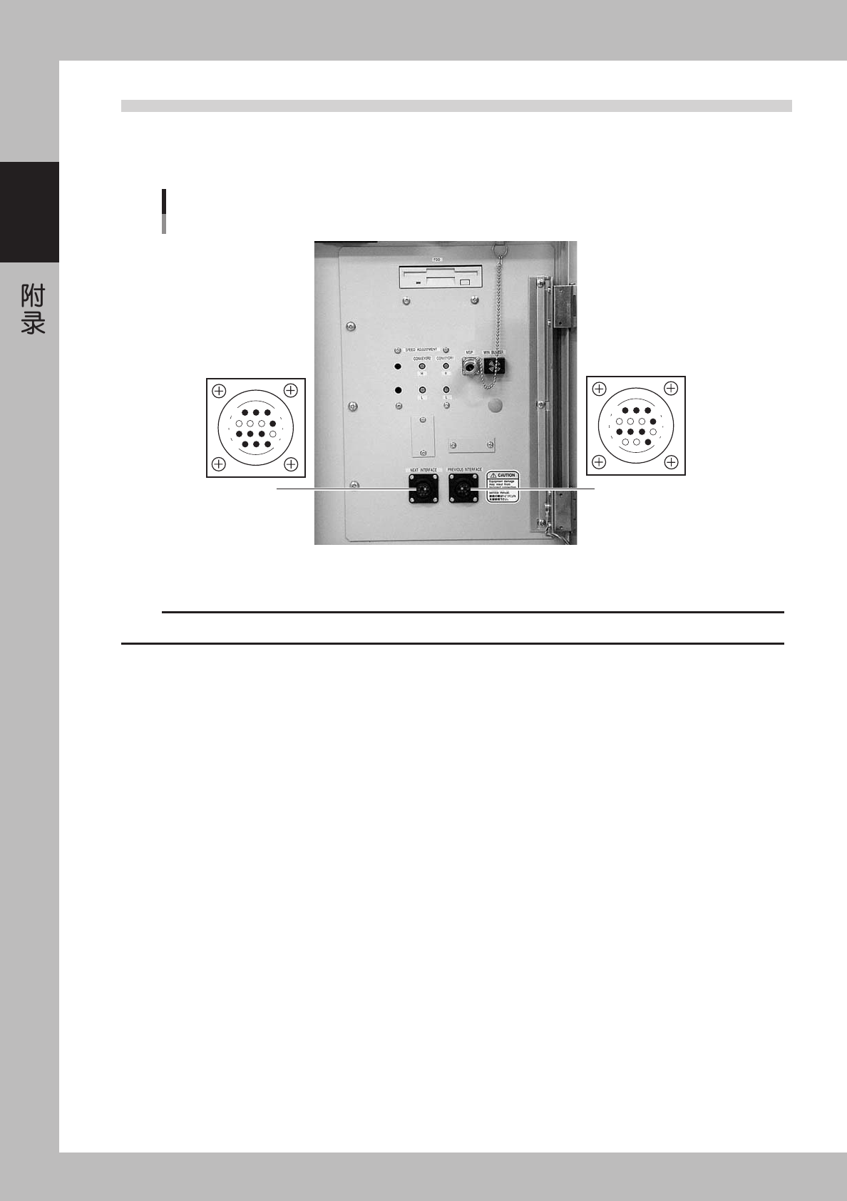 下位机 相连接,PREVIOUS INTERFACE 接插件与上位机相连接。任何一侧的接插件都被安装在贴片机前面右下面