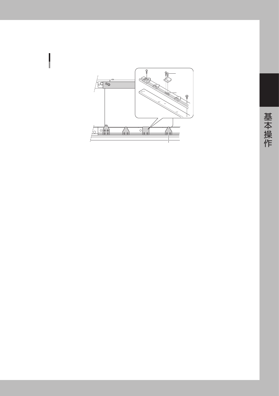 2-17 2 3 . 4 . 4 基 板 压 板 基 板 压 板 的 作 用 即 是 决 定 基 板 位 置 时 从 上 方 推 压 基 板 的 边 缘 。 压 轴 由 M 3 螺 钉 钉 在 轨 道 上 。 因 为 定 位 针 穿 过 压 板 , 所 以 压 板 上 有 缺 口 , 缺 口 位 置 必 须 与 可 动 侧 定 位 针 的 位 置 一 致 , 其 他 的 压 板 可 根 据 基 板 尺 寸 , 平 均 配 置 。 M3螺…
