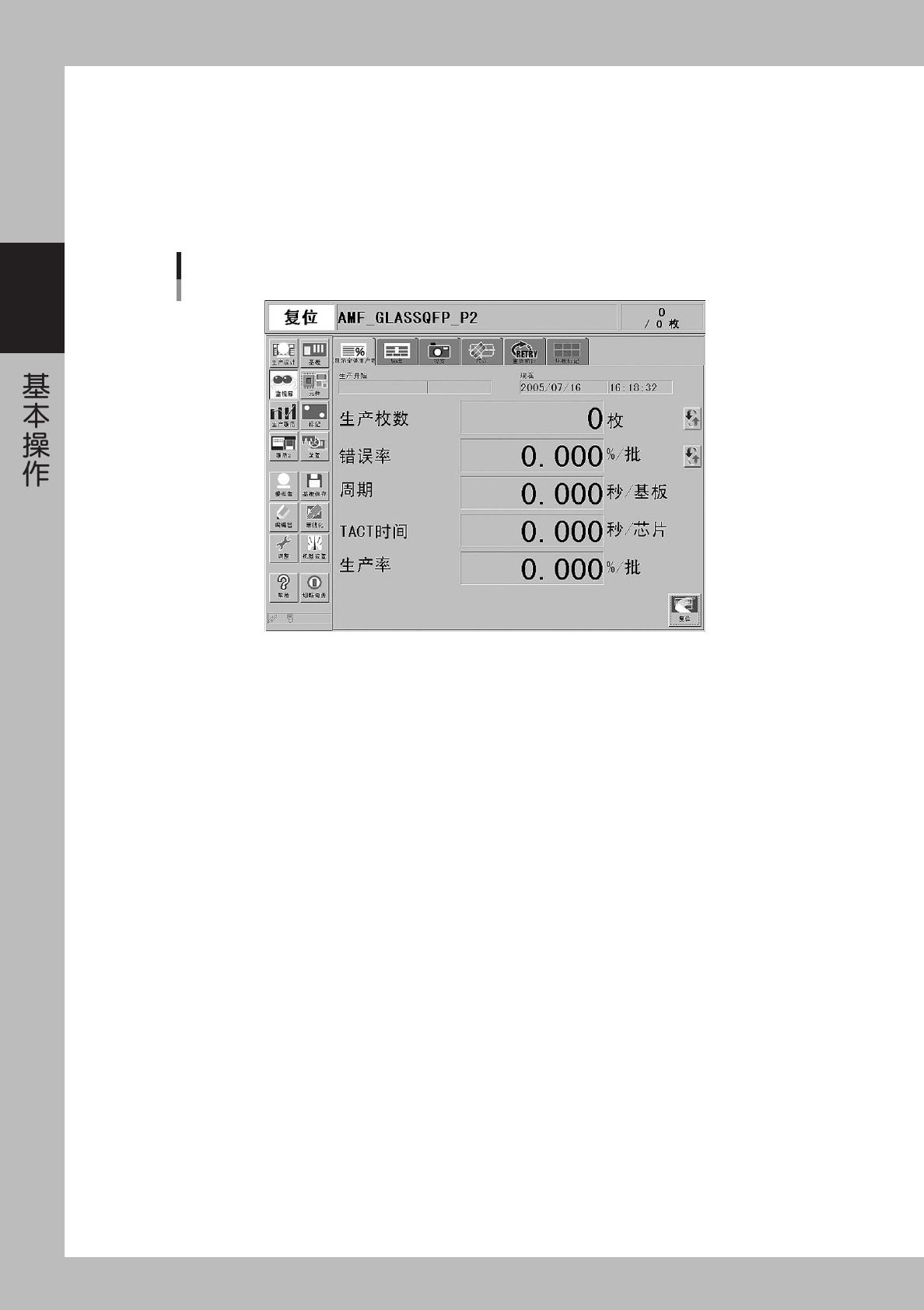 该画面显示了目前生产的基板数量、生产状况等即时信息。生产过程中,始终打开该画面的话,便于生产。如切换了生产基板,