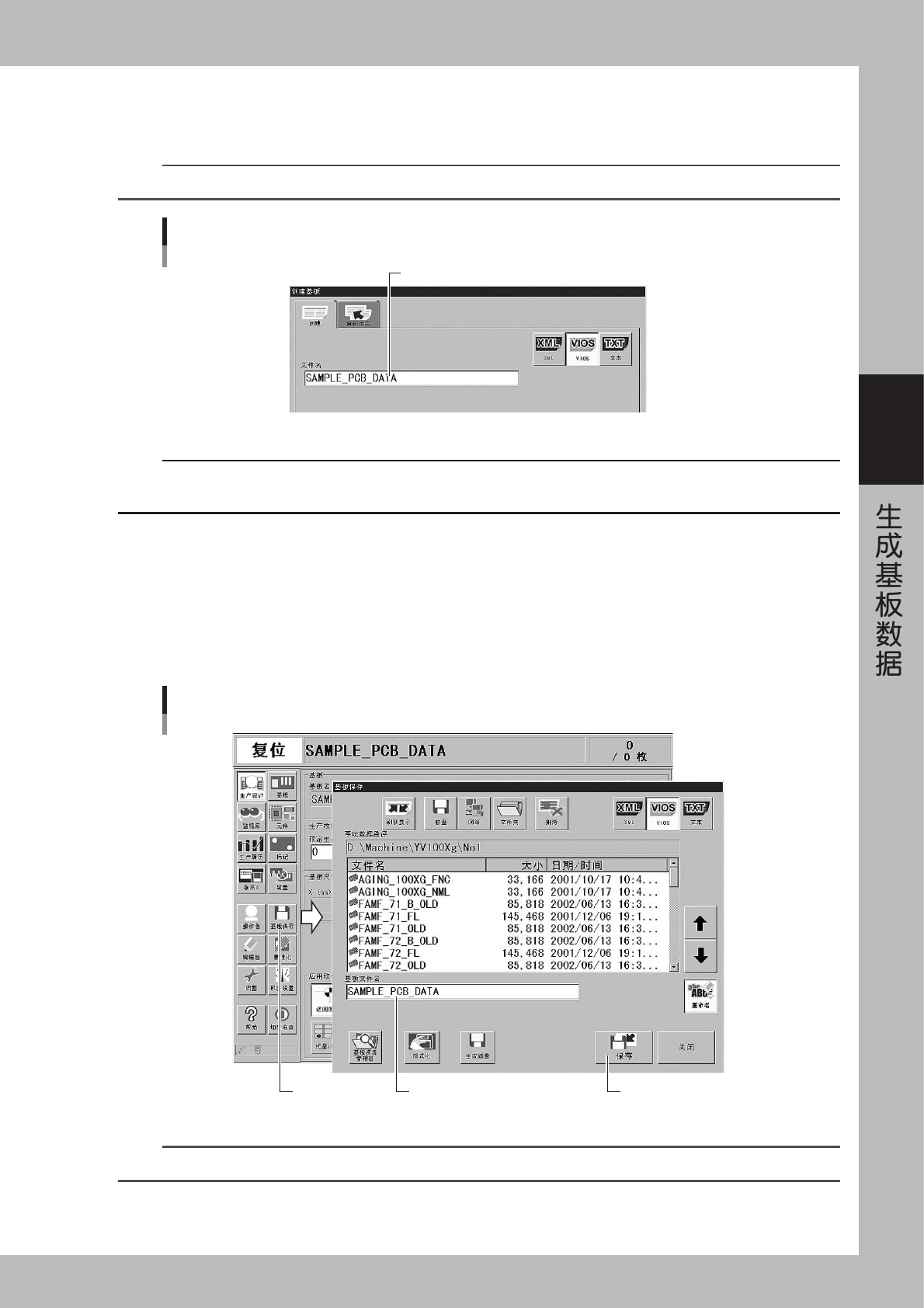 请选择文件保存形式,用键盘输入半角英数 20 文字以内的基板名称。