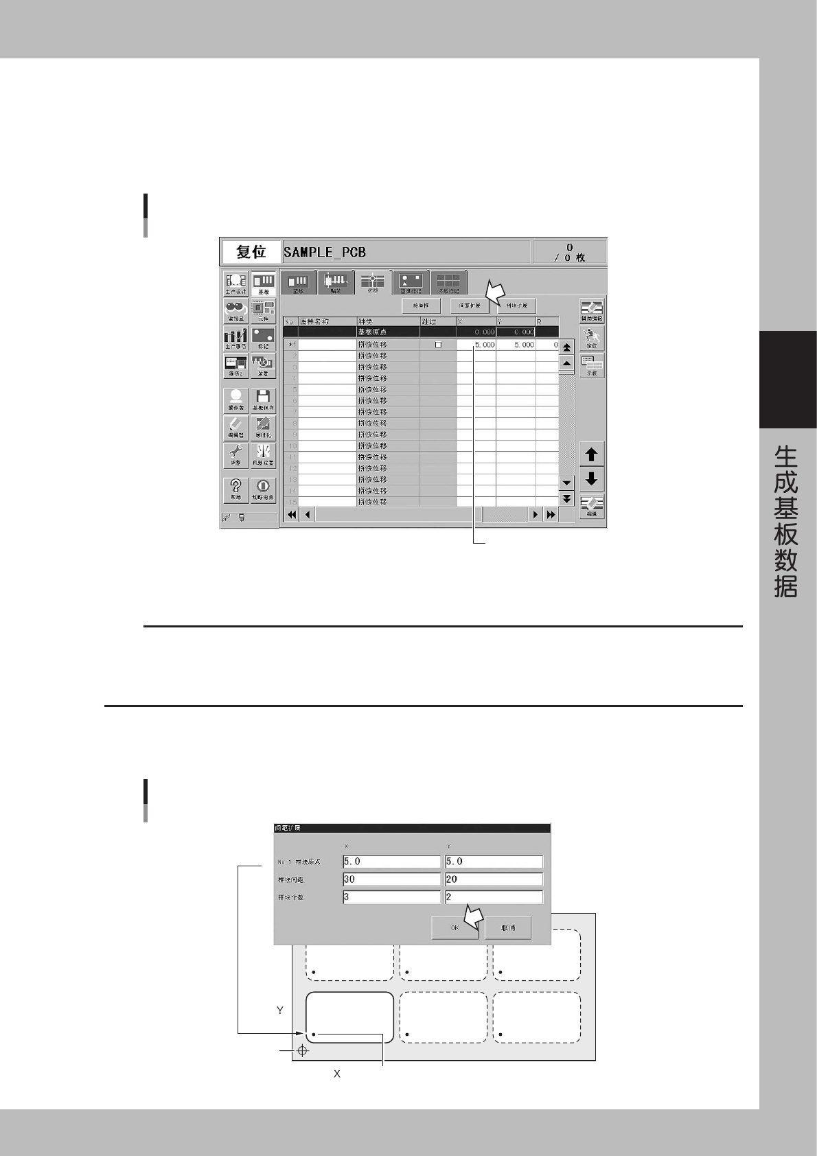 请输入初始的坐标值。如果数值与基板原点相同则无需输入。
