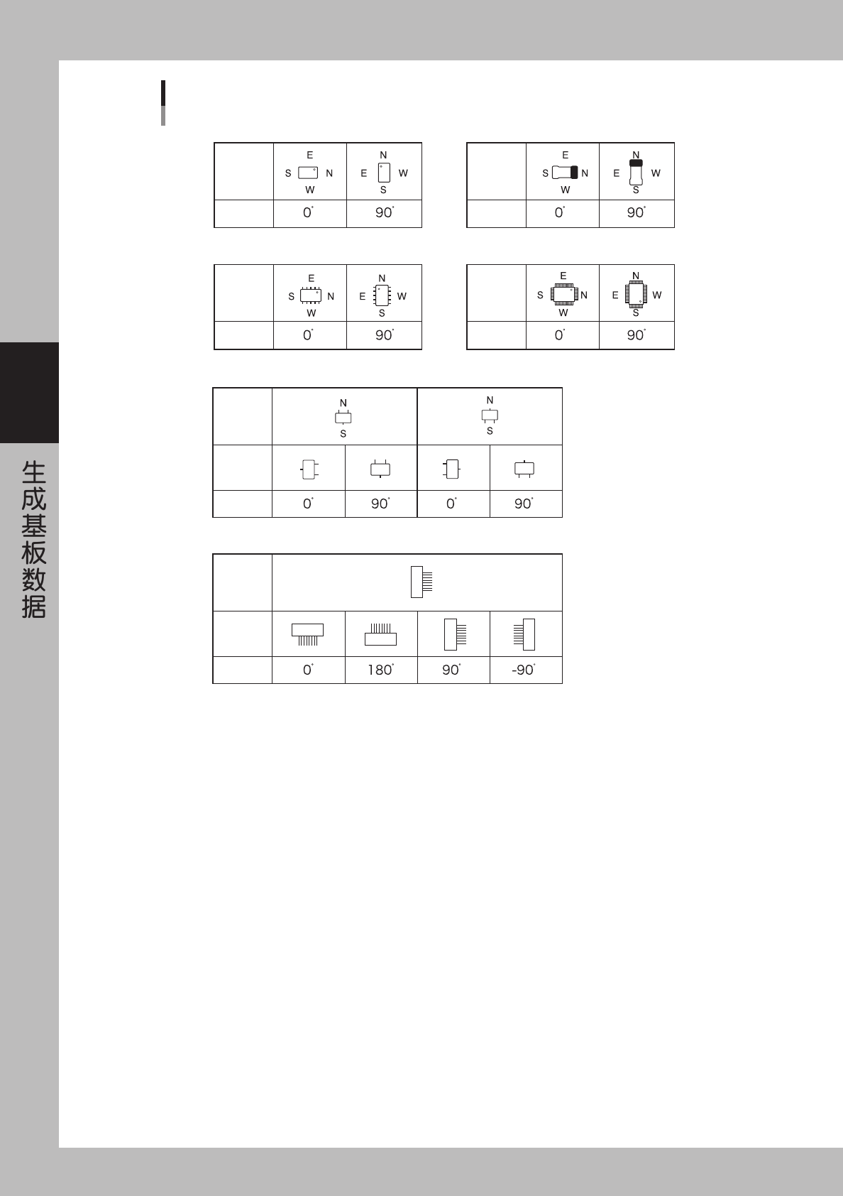 · 因为接插件必须使引脚全部面对 E 方向设置吸料角度,请参照下表输入正确的吸料角度。