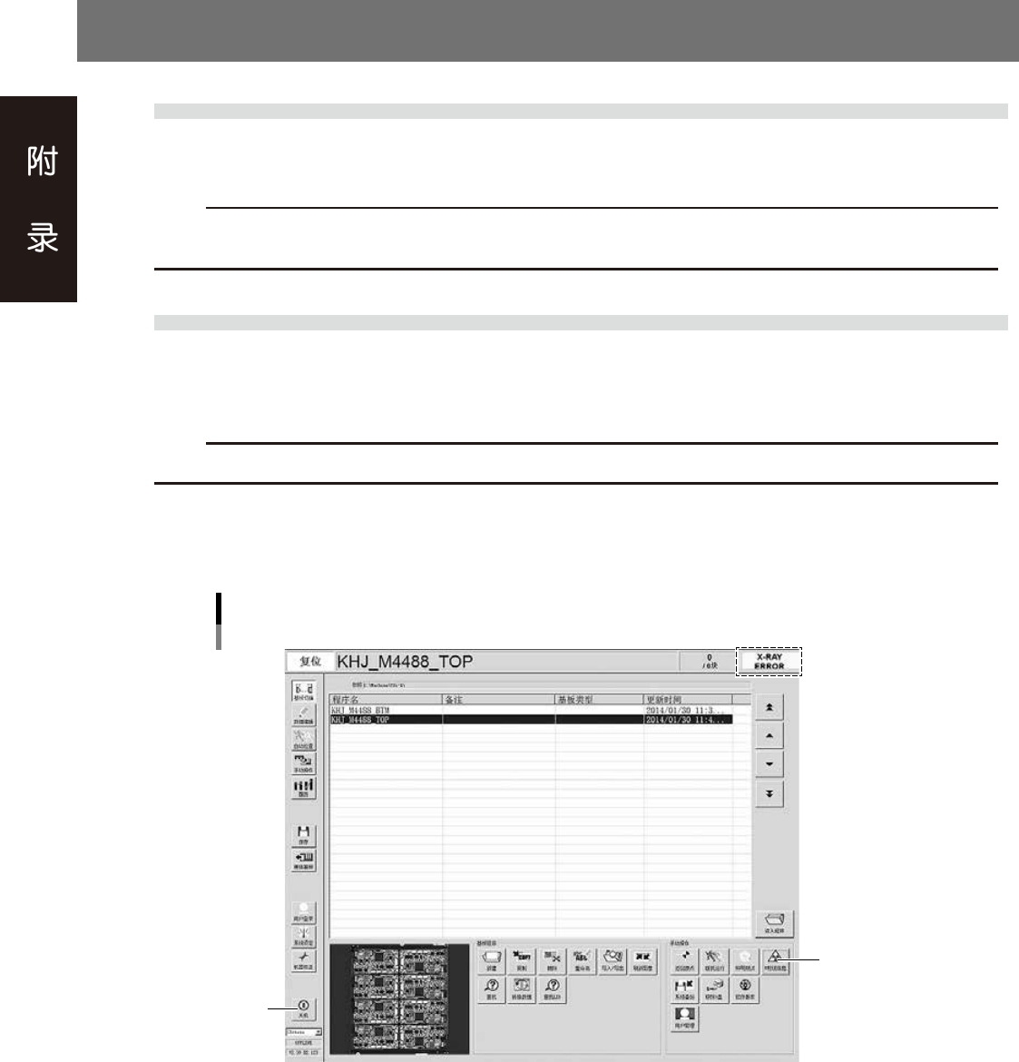 按“基板切换”画面右下部的 [X 射线信息 ] 按钮,打开“X 射线信息”画面。