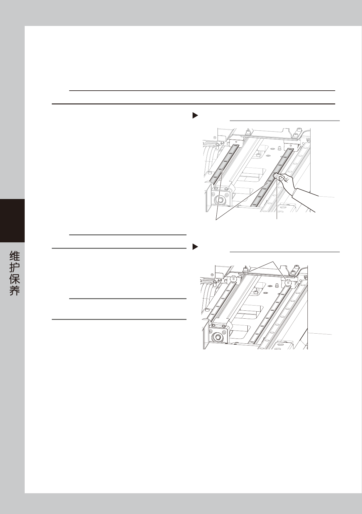 指定的润滑油注油嘴注入。如右图所示左右导轨上