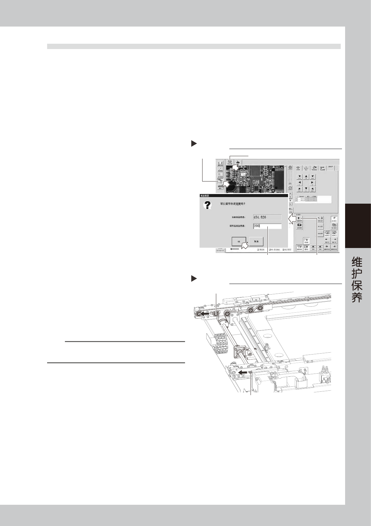将传送宽度调到便于点检、清洁的宽度。