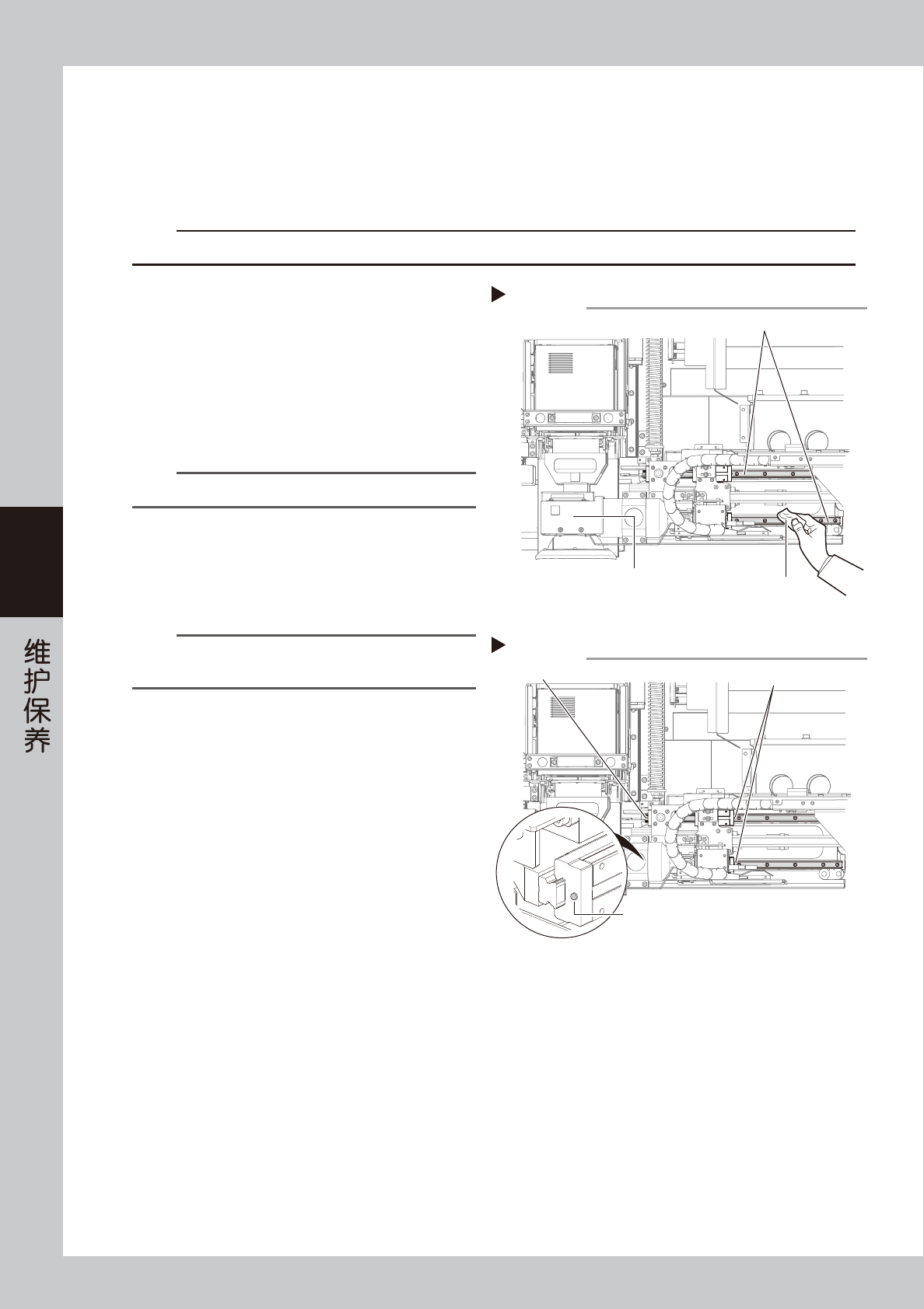 指定的润滑油注油嘴注入。左右导轨各有 2 处润滑