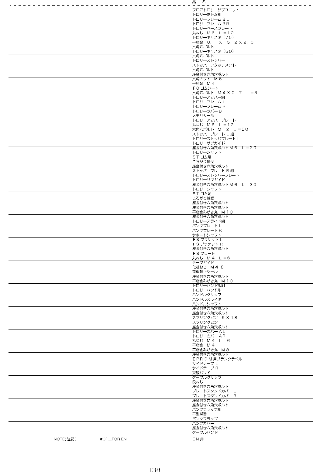- - REF.NO N O TE PART NO D E S C R I P T I O N Q ty 1 400-21958 FLO OR T R OLLEY SUB UNIT 1 2 400-21959 TROLLEY BOTTOM ASSY (1 ) 3 400-21912 TROLLEY FRAME B L (1 ) 4 400-21913 TROLLEY FRAME B R (1) 5 400-21914 TROLLEY…
