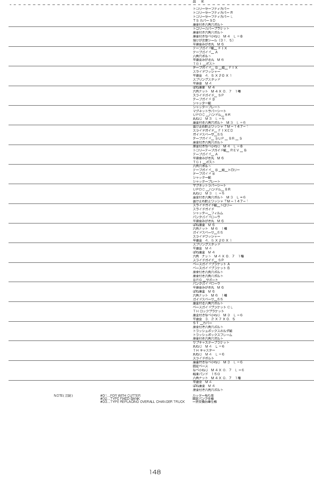 REF.NO NOTE PART NO D E S C R I P T I O N Qty
