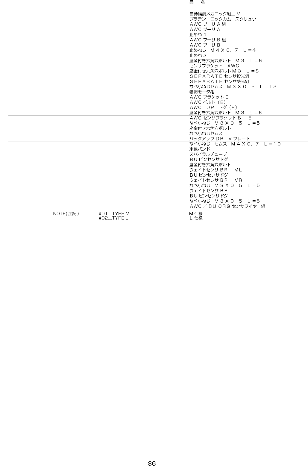 REF.NO NOTE PART NO D E S C R I P T I O N Qty