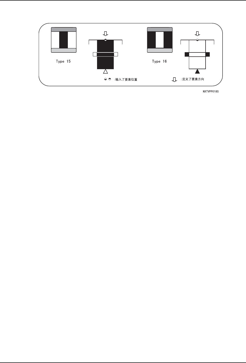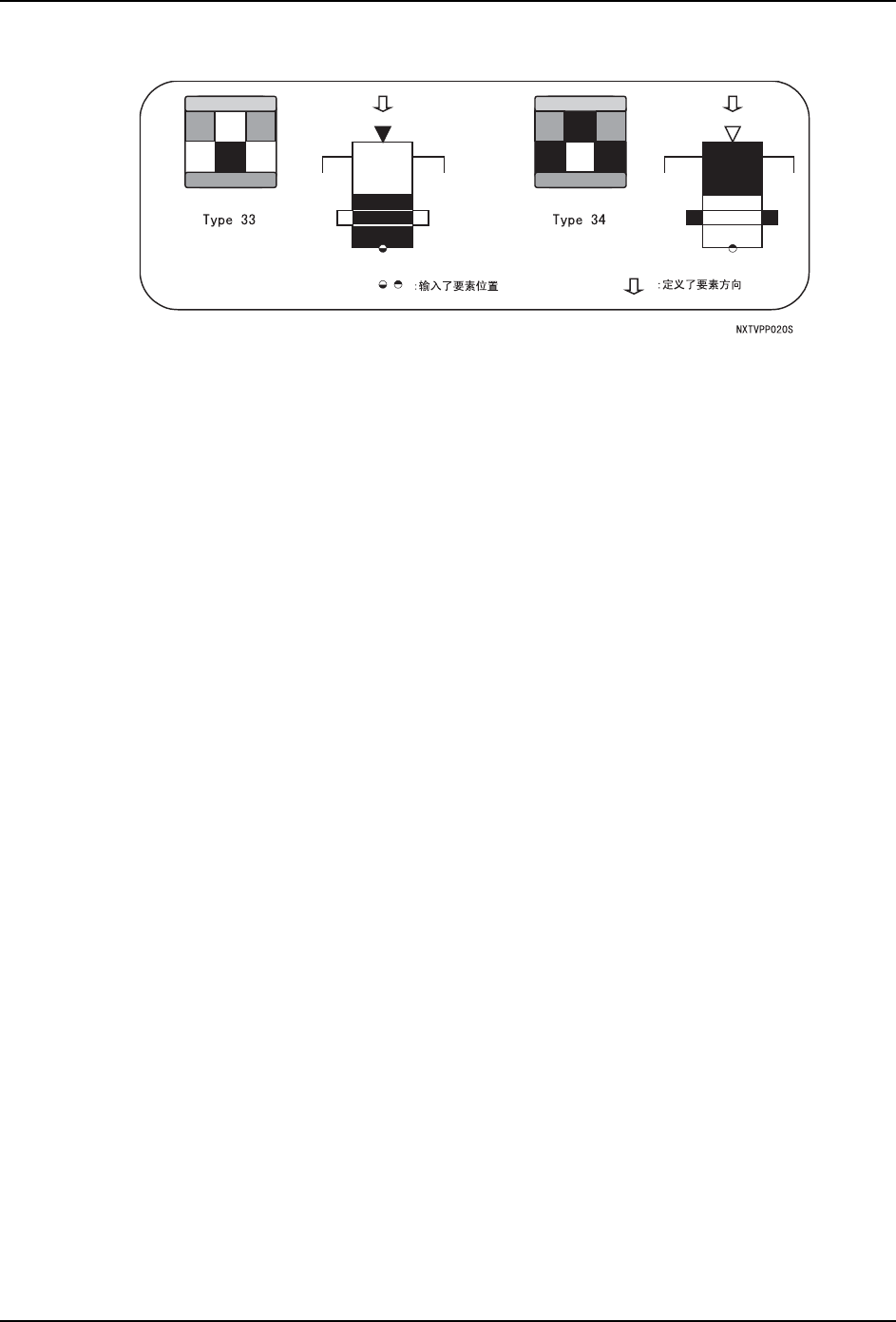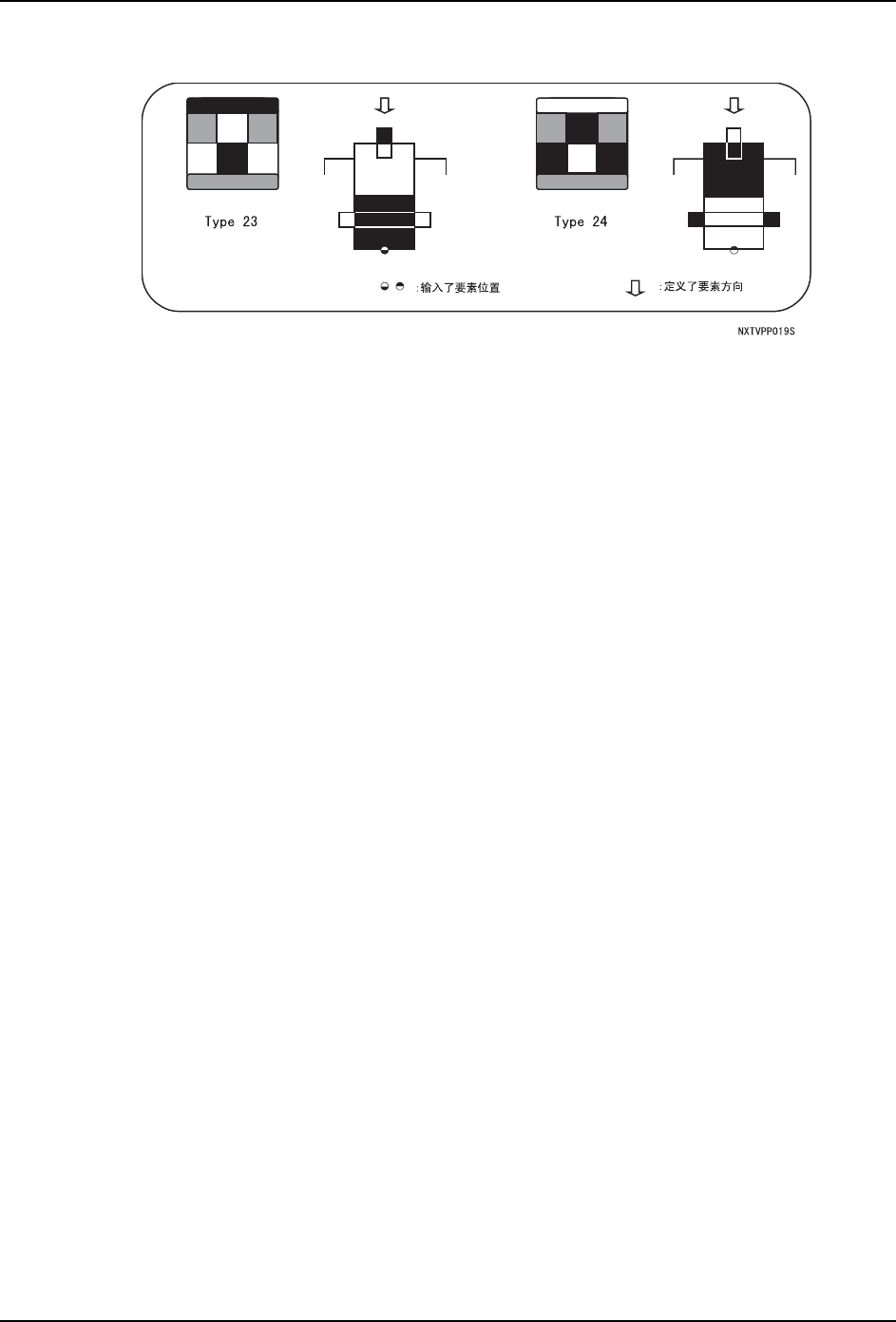 3. 元件数据设置 QD148-03 94 NXT Ⅱ编程手册 P_pattern 23,24 不能用于 NXT-2 上。 执行引脚顶端和宽度检测, 结果将用于判断元件位置, 这点与 Type 3, 4 相同。主要区别在于使用 P 类型时,检测到的引脚顶端和引 脚宽度上的颜色是相反的。 · Type 23 : 引脚顶端显示为白色, 引脚主体显示为黑色。 引脚顶端靠近外围部分的 半边为黑色,靠近主体部分的半 边为白色。 · Type 24…