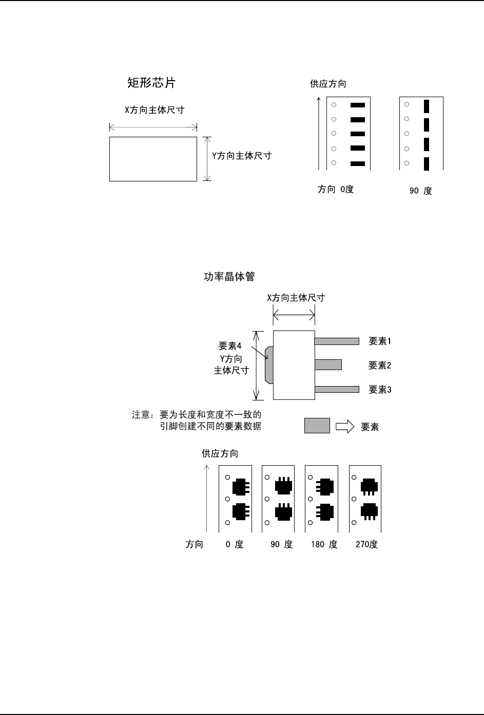 在元件数据中输入元件主体尺寸。不需要输入要素信息。元件基准点是元件中心。对元件是