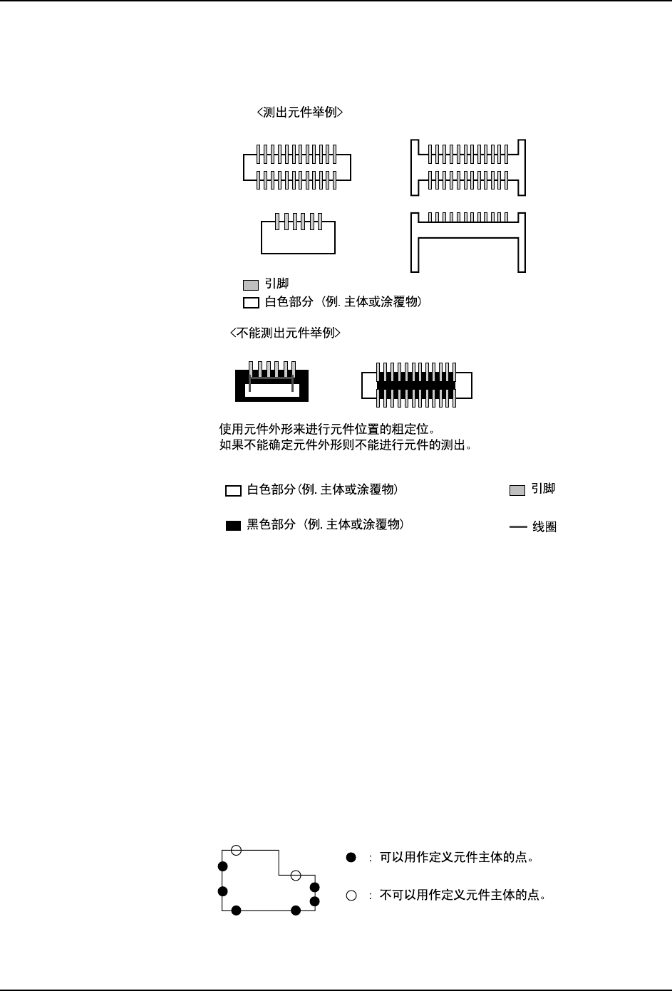 根据要素信息中指定的引脚数据和突起数据自动判断元件主体检测点位置。当不能自动判