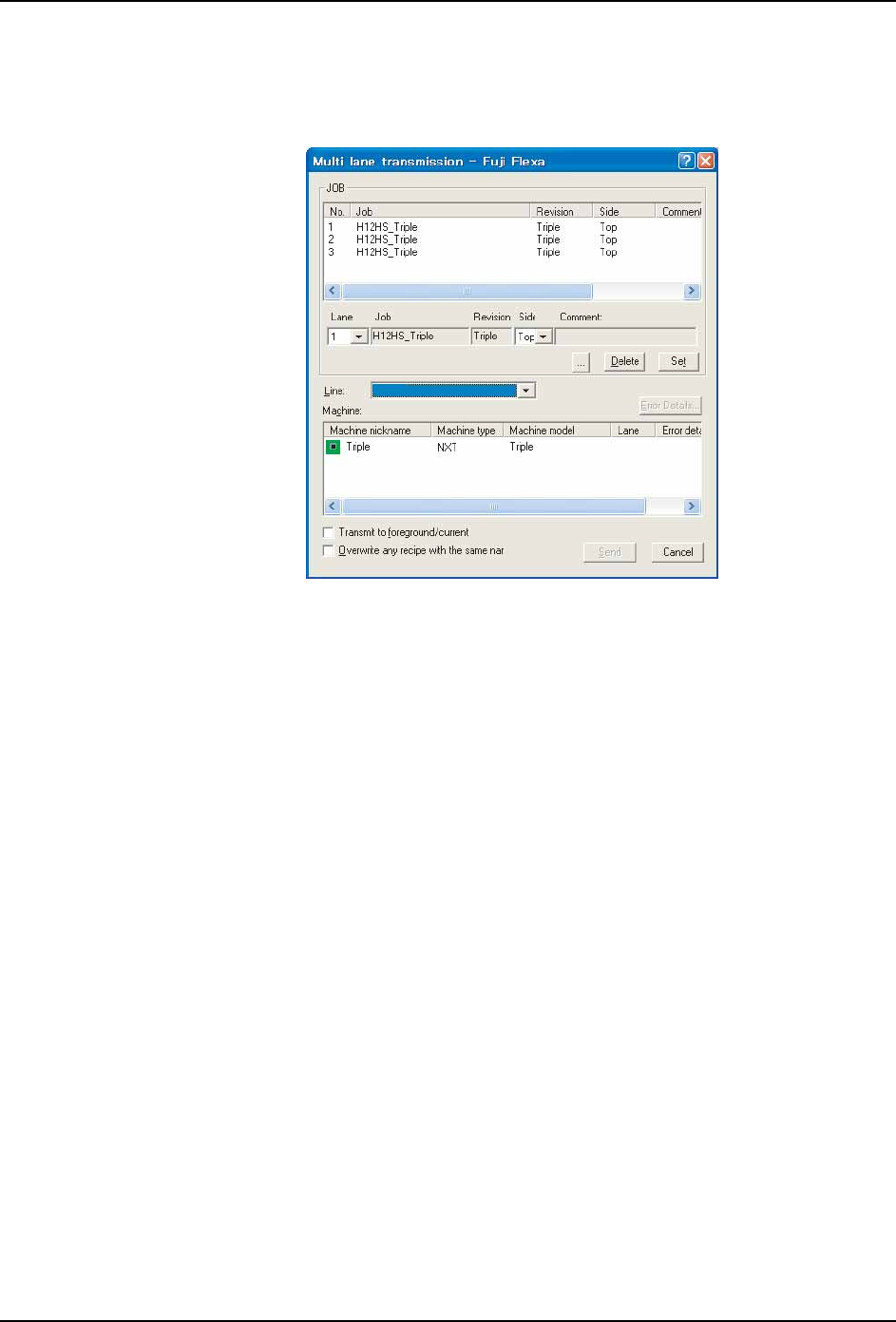 使用 [Set Transmission] 可以同时将不同 Job 传输到不同通道中。在进行双通道生产和三