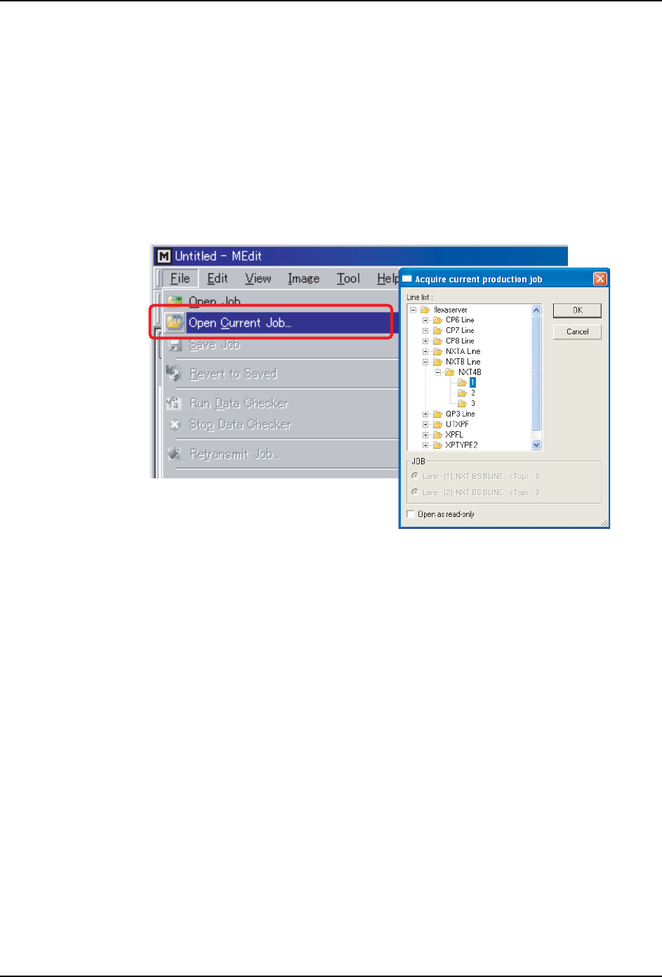 2. 在 [File] 菜单中单击 [Open Current Job]。显示 [Acquire current production Job]