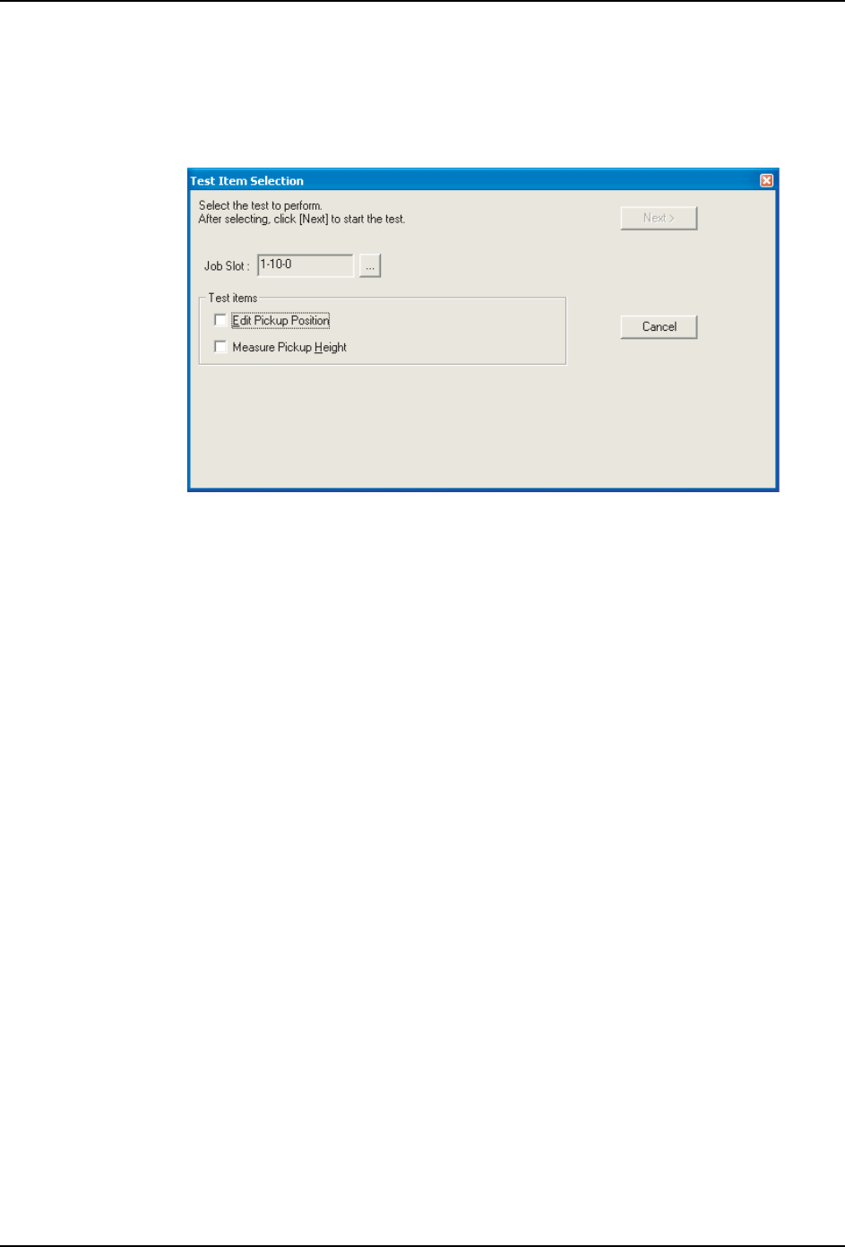 10.从新的显示部分中选择要执行测试的类型。如果选择了 [Edit Pickup Position] 选项,