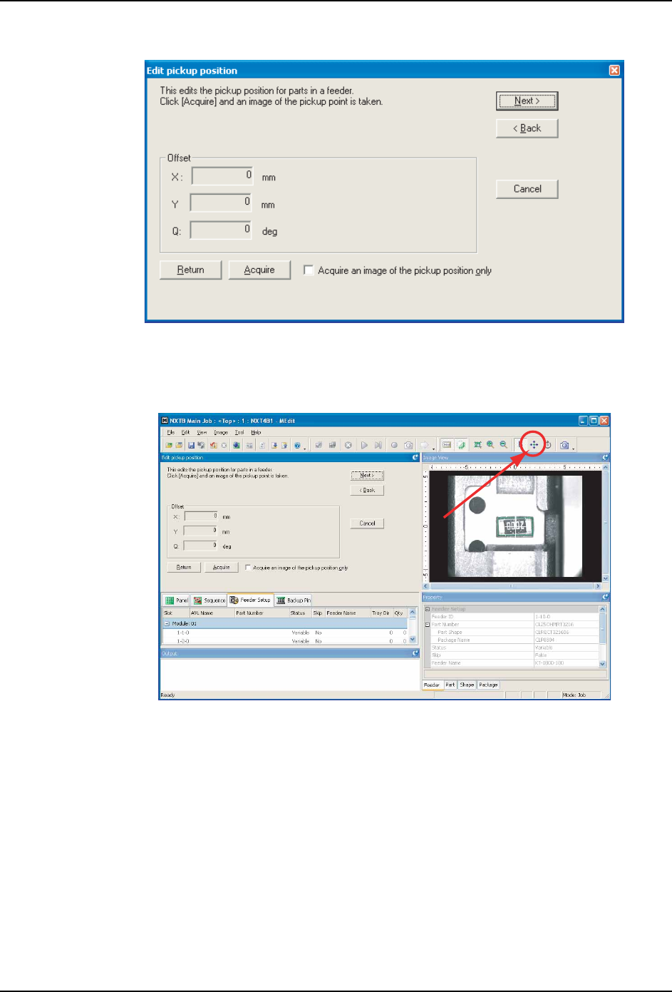 考 " 5.8.4 吸取测试时的供料器送料数和料带的返回方法 "),然后单击 [Acquire] 获