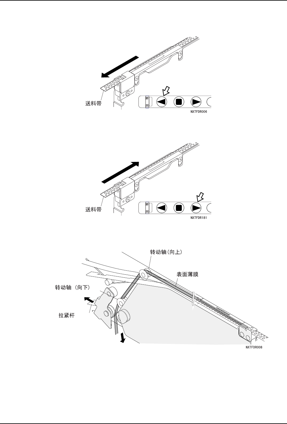备注 )拉紧杆是为在旋转时防止顶部的薄膜松散而设计的 (例如料带向前送料)。当反方向