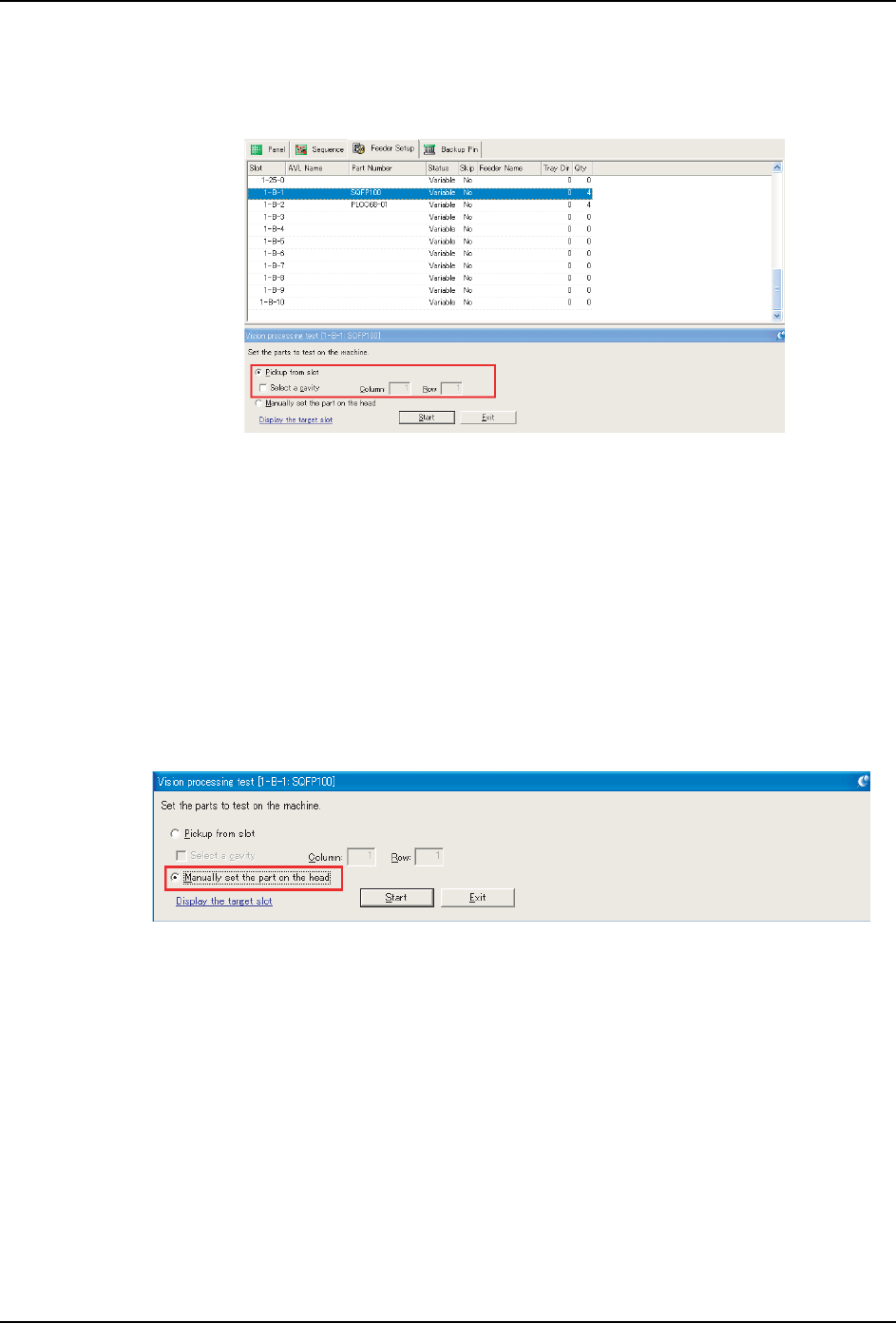 注意 )执行影像处理测试前,要执行吸取测试来决定正确的吸取位置。