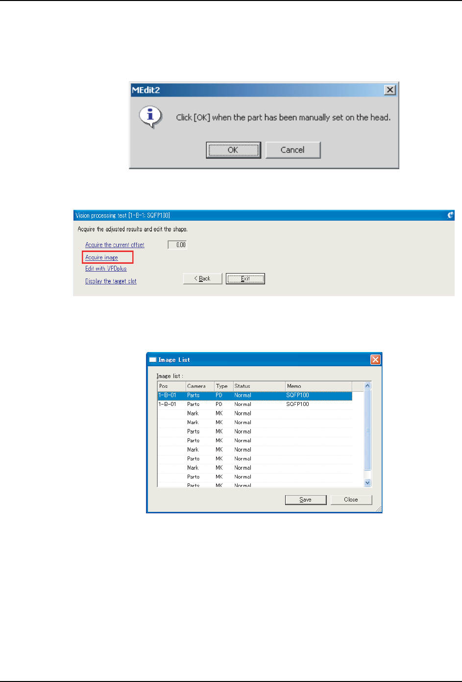f. 在 MEdit 显示的对话框中单击 [OK],手动装载的元件将进行影像处理。