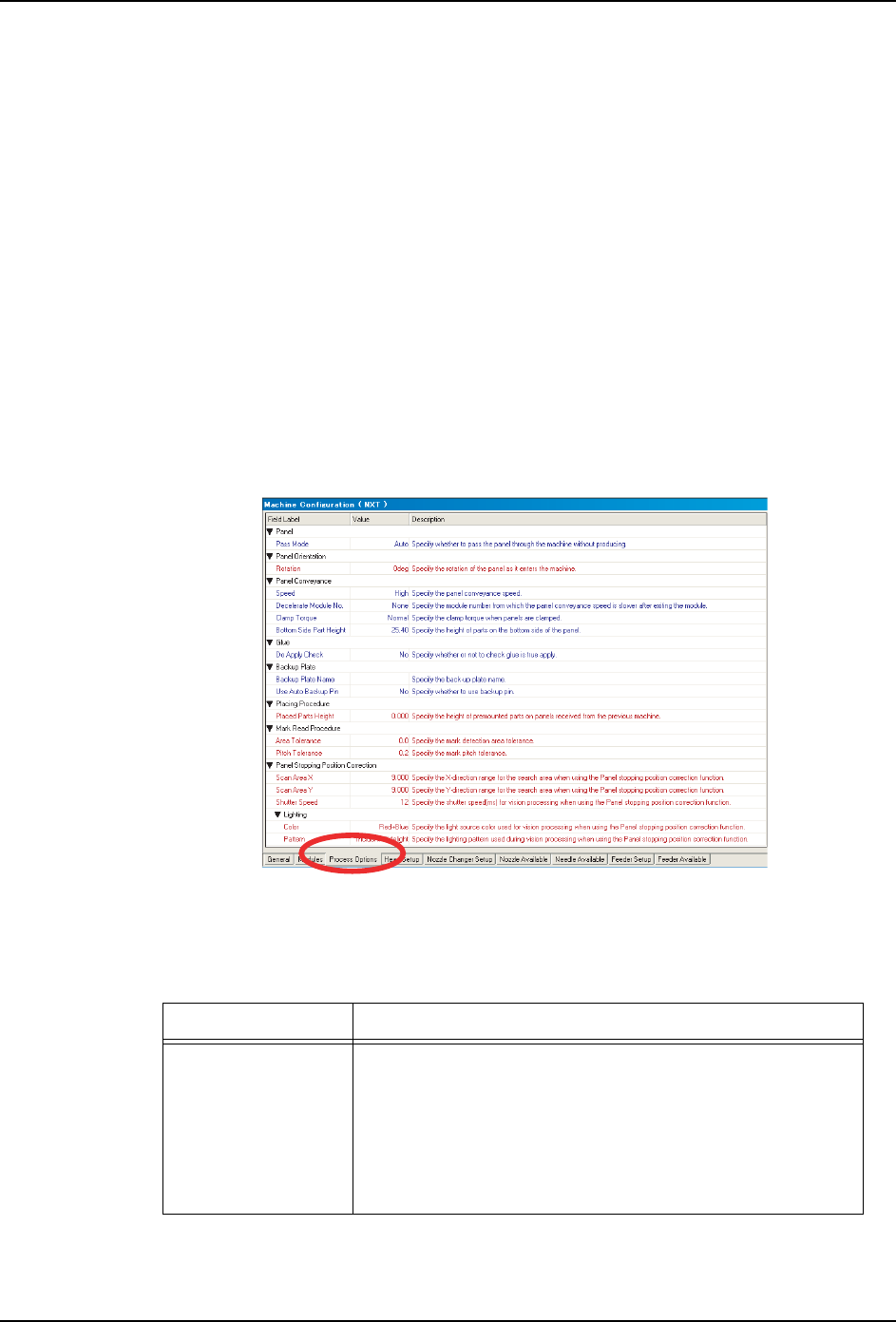 1. [Machine Configuration] 窗格下方有多个标签页。通过单击 [Process Options]标签