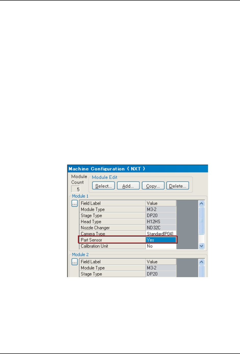 3. 选择此模组 [Part Sensor] 设置中的 [Yes]。