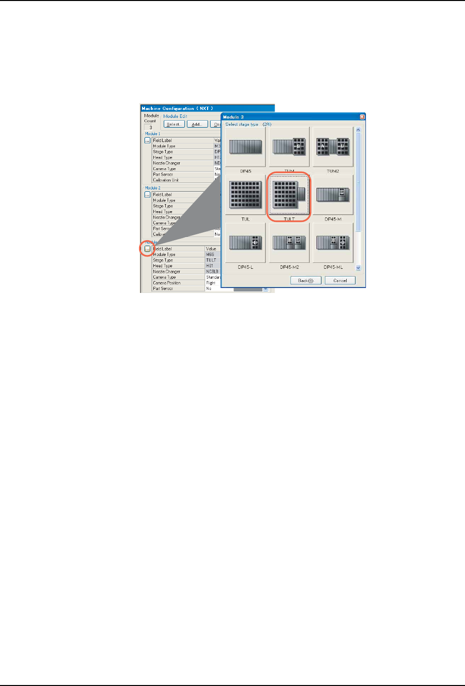 1. 请在 Job 的机器构成 (Machine Configuration) 画面上,将模组的平台类型 (Stage