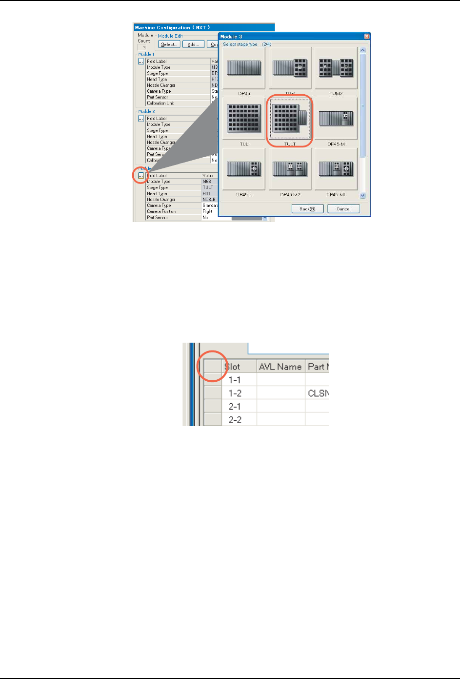 1. 请在 Job 的机器构成 (Machine Configuration) 画面上,将模组的料站类型 (Stage