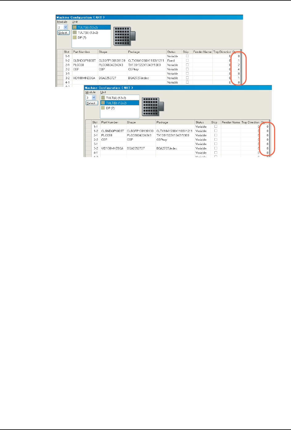 2. Job 编制器 QD148-03 40 NXT Ⅱ编程手册 2. 请 进行优化。参见 " 2.6 优化 " 3. 请选择 [Feeder Setup] 标签页, 确认是否料盘箱 A 内 的所有料盘都被配置了。 如果料盘箱 A, B 双方都配置有料盘时,请 根据以下步骤重新进行优化,将其 改为只在 料盘箱 A 上配置。 a. 在料盘箱 B 的画面上, 单击左上方的方块。 b. 接着右击,从快捷方式菜单中选择 [ …