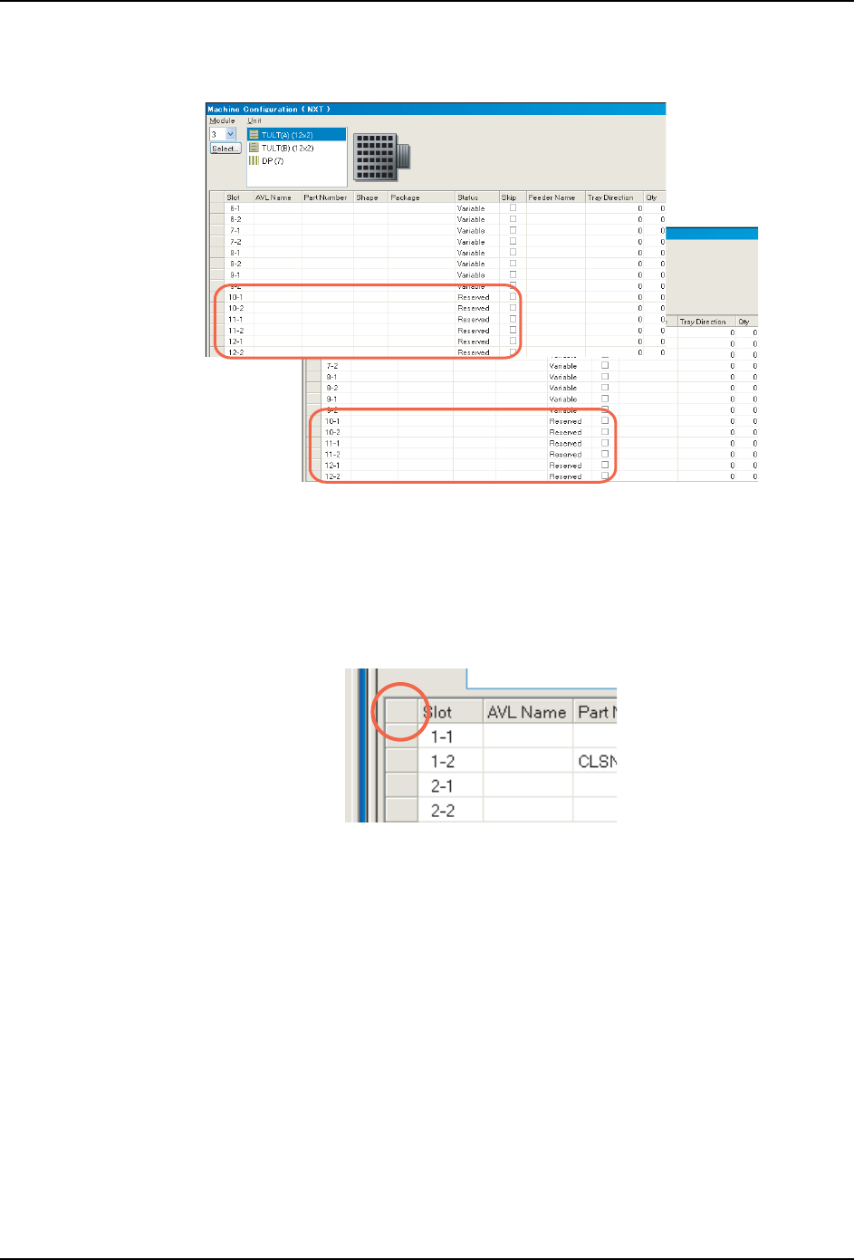 3. 将料盘箱 A 的从料槽 10-1 到料槽 12-2 的功料器设定,变更为 Status [Reserved]。