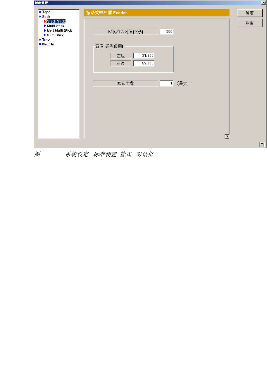 以下画面是在目录框中选择 “Stick”时。 设定有关管式喂料器的数据。