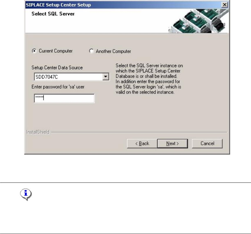 Installation Manual SIPLACE Setup Center RF 2.1 3 Installation Edition 09/2005 EN 3.3 Installation of SIPLACE Setup Center and Possible Setup Types 21 Ste p 2 The insta llation detect s the existing SPI version a nd inst…