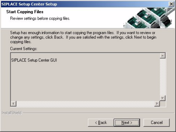 The installation detects the existing SPI version and installs the according SIPLACE Setup Center