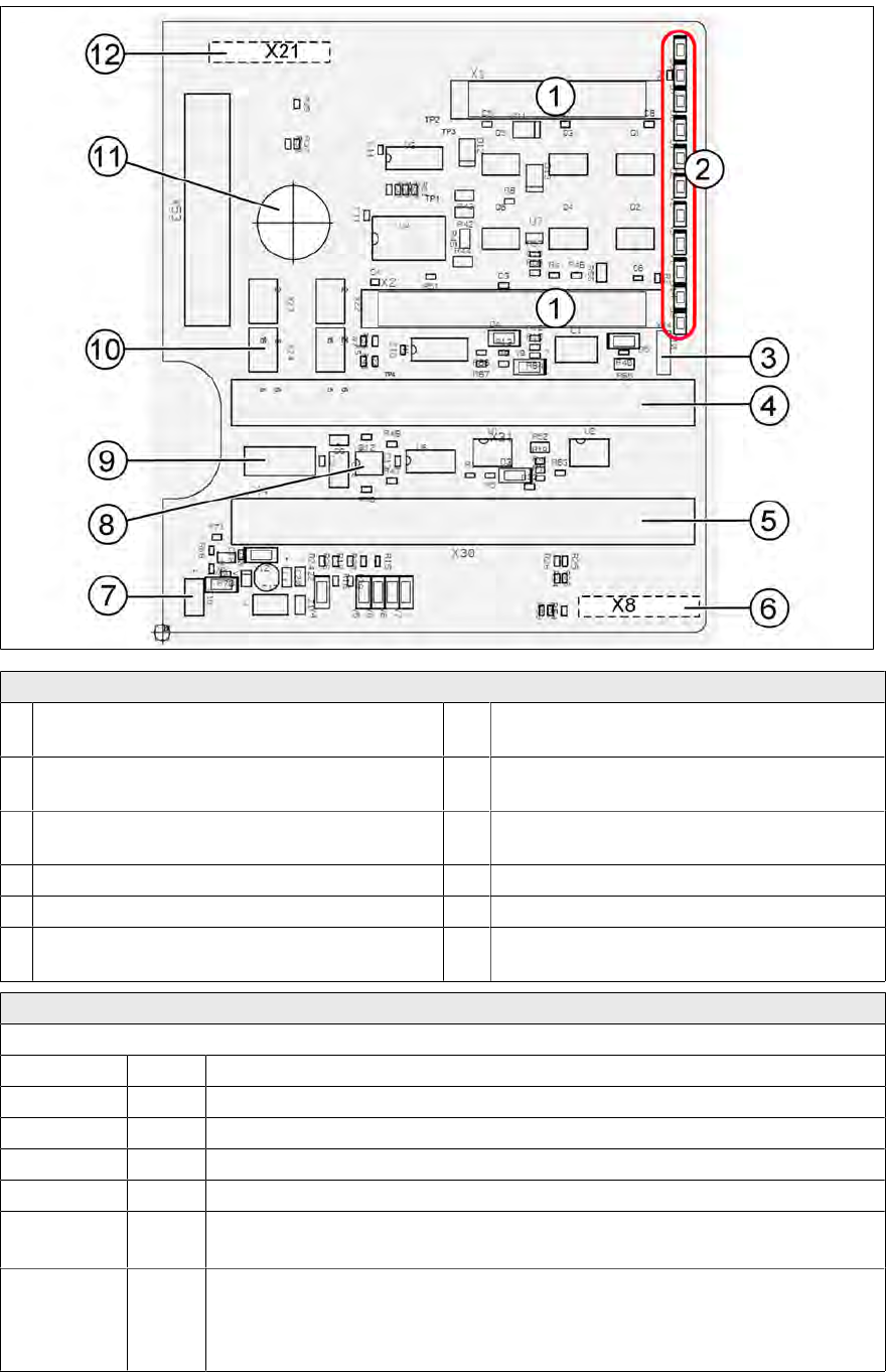V2/V_SP 绿色 显示 D 轴料槽信号的 15 V 电压供应。关 – 在设置为开的跳线和旧测力
