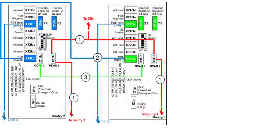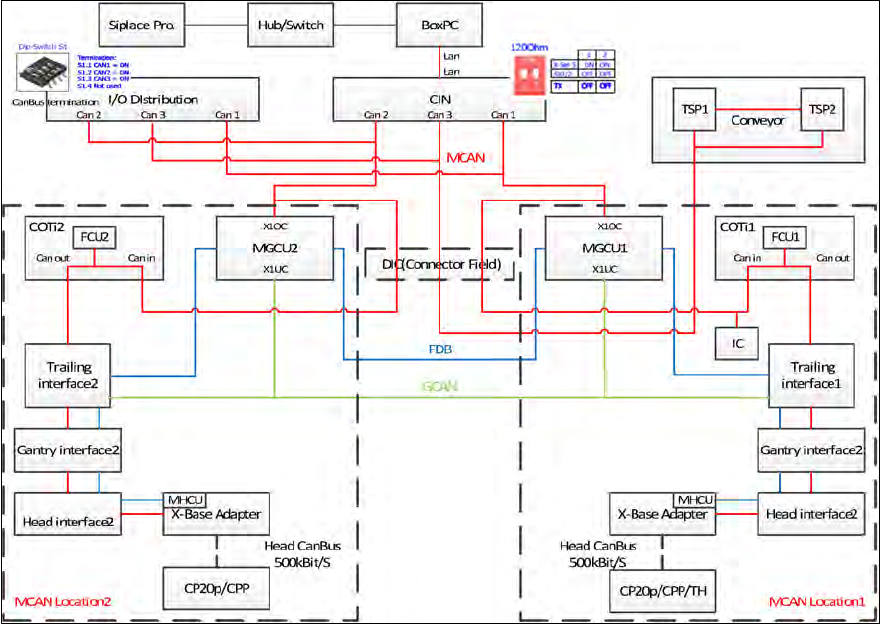 GCAN总线负责悬臂控制单元(MGCU)和贴片头控制单元(MHCU)(例如贴片头 CAN 诊断或 SIRIO