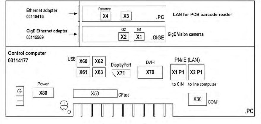 TX系列 技术培训 01/2016 11 控制和通信 11.4 Box PC(控制计算机) 177 控制计算机 SIPLACE TX 不同端口用于不同显示器,“DisplayPort”(X71)用于显示器 1(电源侧),“DVI-I”(X70) 用于显示器 2。 成功安装软件前,两个显示器显示可能会有差异。