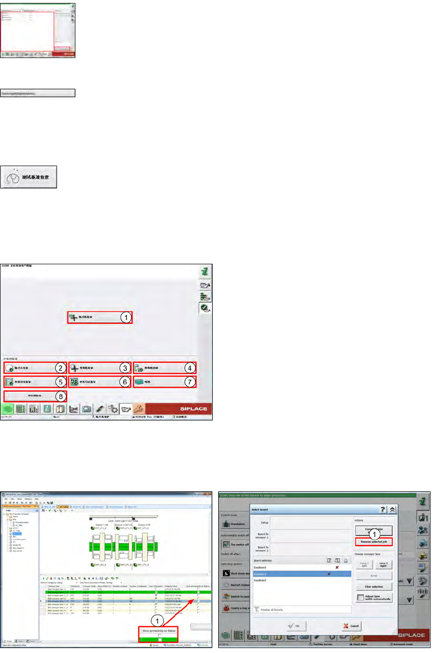 TX系列 技术培训 01/2016 12 贴片机软件概览 12.4 维护保养界面 195 预防性维护作业页面 真空状态、高度和扫描值(含生产喷嘴)概览显示了已禁用的 DP,可通过退出按钮返回维护保养界 面。 吸嘴交换器中的返回吸嘴、悬臂移至设置位置,必要时移动所有料台(SX)。贴片机处于开启状 态。 通过料带切割器的两个切口检查刀片和循环使用周期。 检查并显示配备分辨率传感器的风扇(SIPLACE TX)。 通过 C&P20 贴…