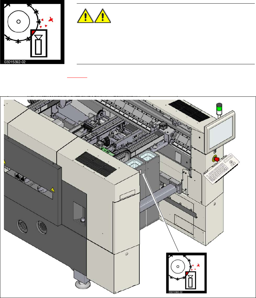 2 Operational safety User manual SIPLACE SX1/SX2 2.2 Warning labels From software version SC 706.1 SP1 Version 10/2014 52 2.2.8 "Head crash" label on the IC camera of the T winSt ar "Head crash" label…