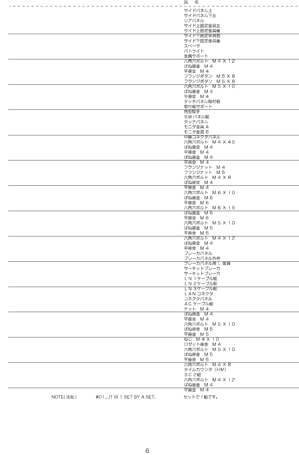 REF.NO NOTE PART NO D E S C R I P T I O N Qty