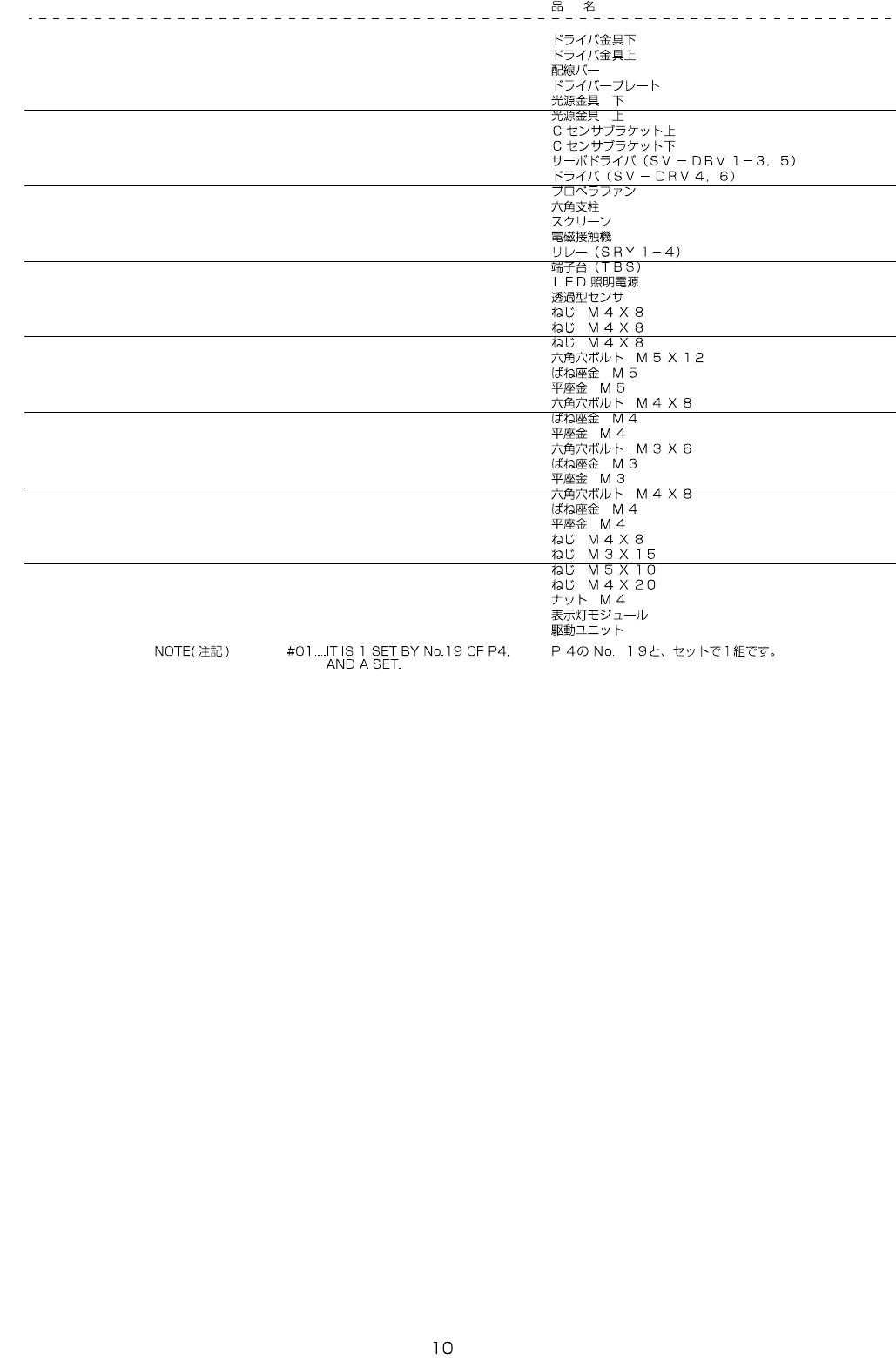 REF.NO NOTE PART NO D E S C R I P T I O N Qty