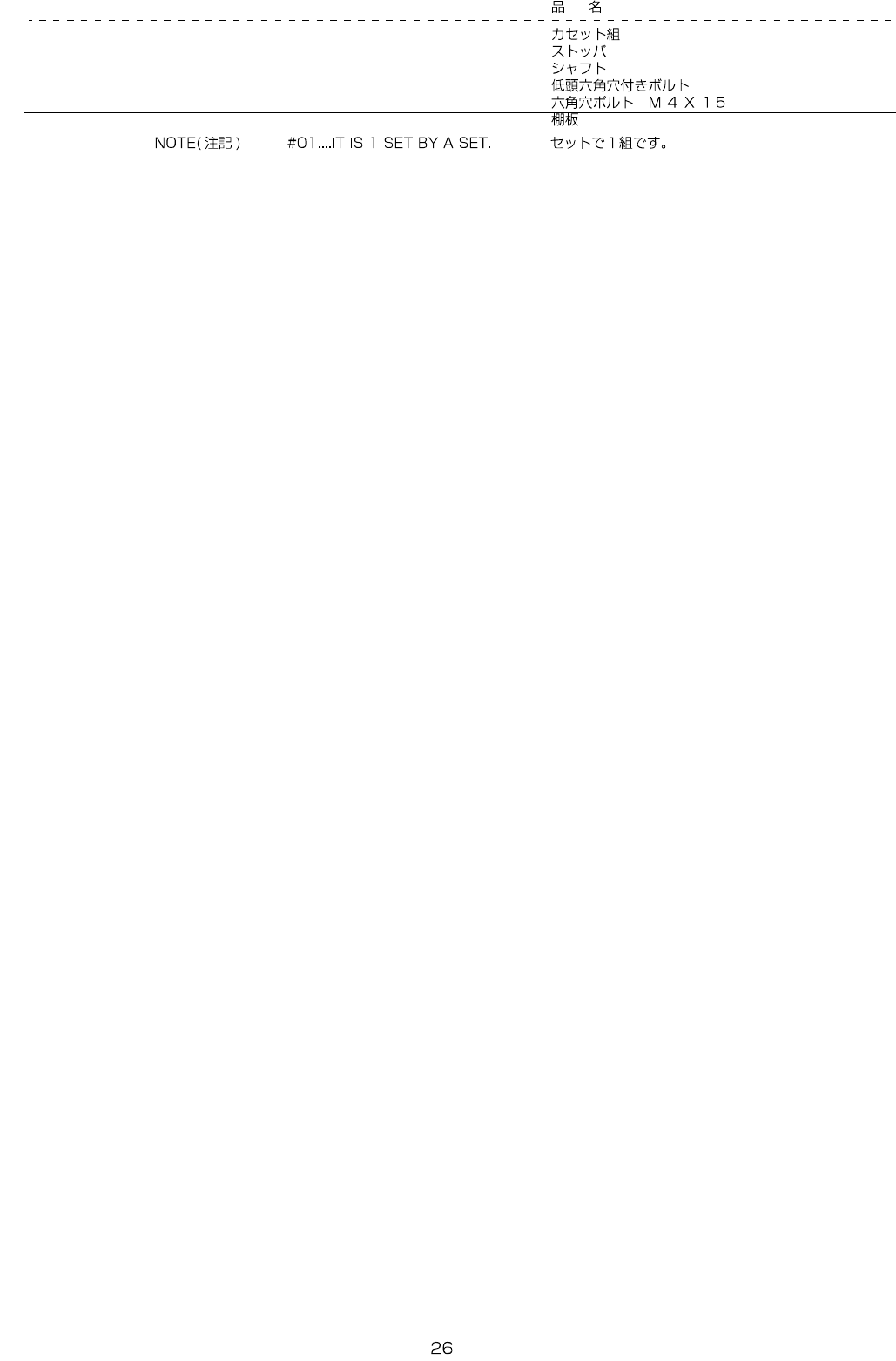 - - REF.NO NOTE P ART NO D E S C R I P T I O N Qty 1 4 01-2 4580 CASS ETTE AS M 1 2 4 01-2 4265 STOP PER (2) 3 4 01-2 4266 SHAFT (4) 4 4 01-2 4267 LOW HEA D CAP SCRE W (8) 5 - BOL T M4X15 (4) 6 #01 401-242 64 SHELF BO …