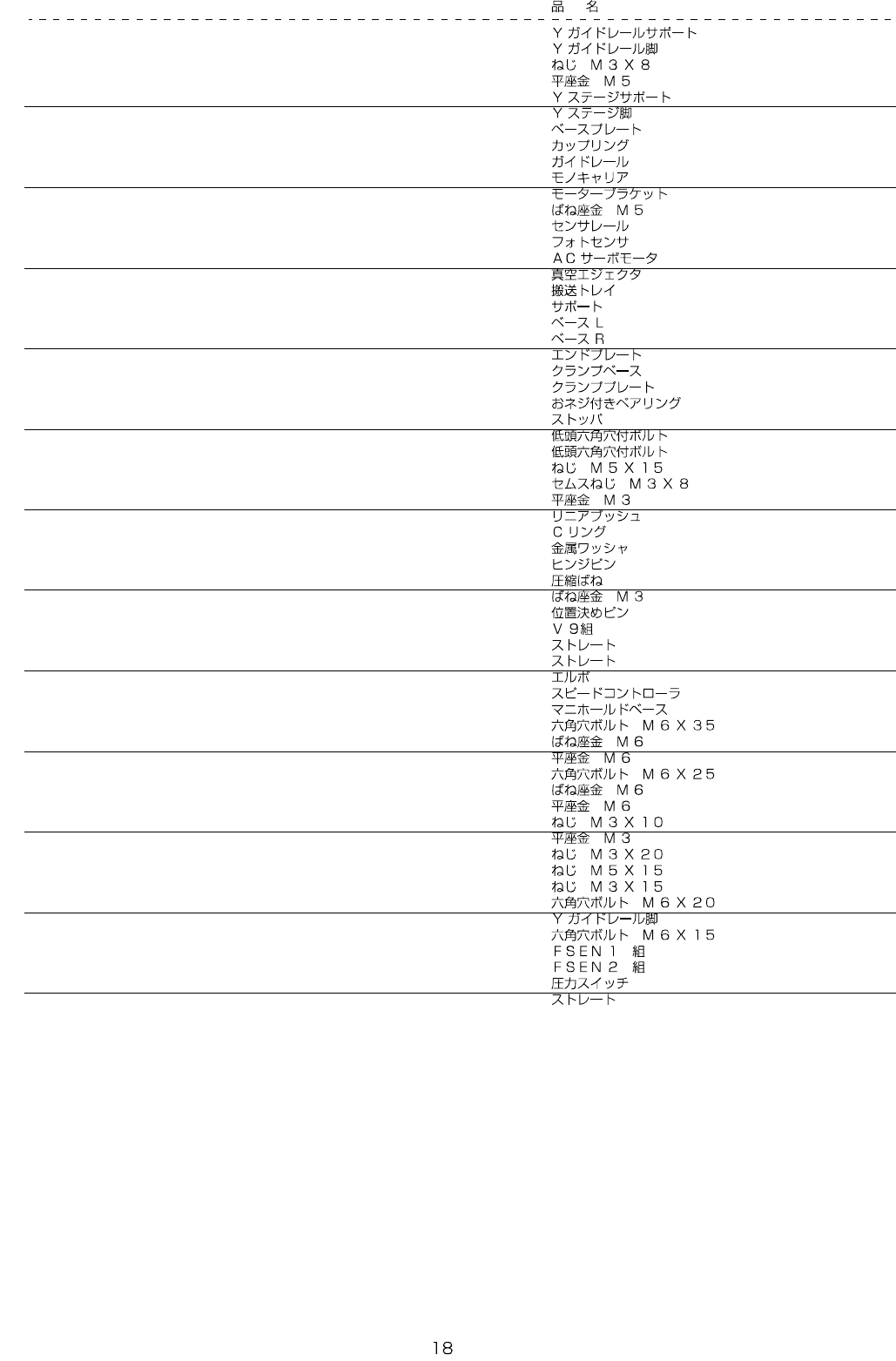 REF.NO NOTE PART NO D E S C R I P T I O N Qty